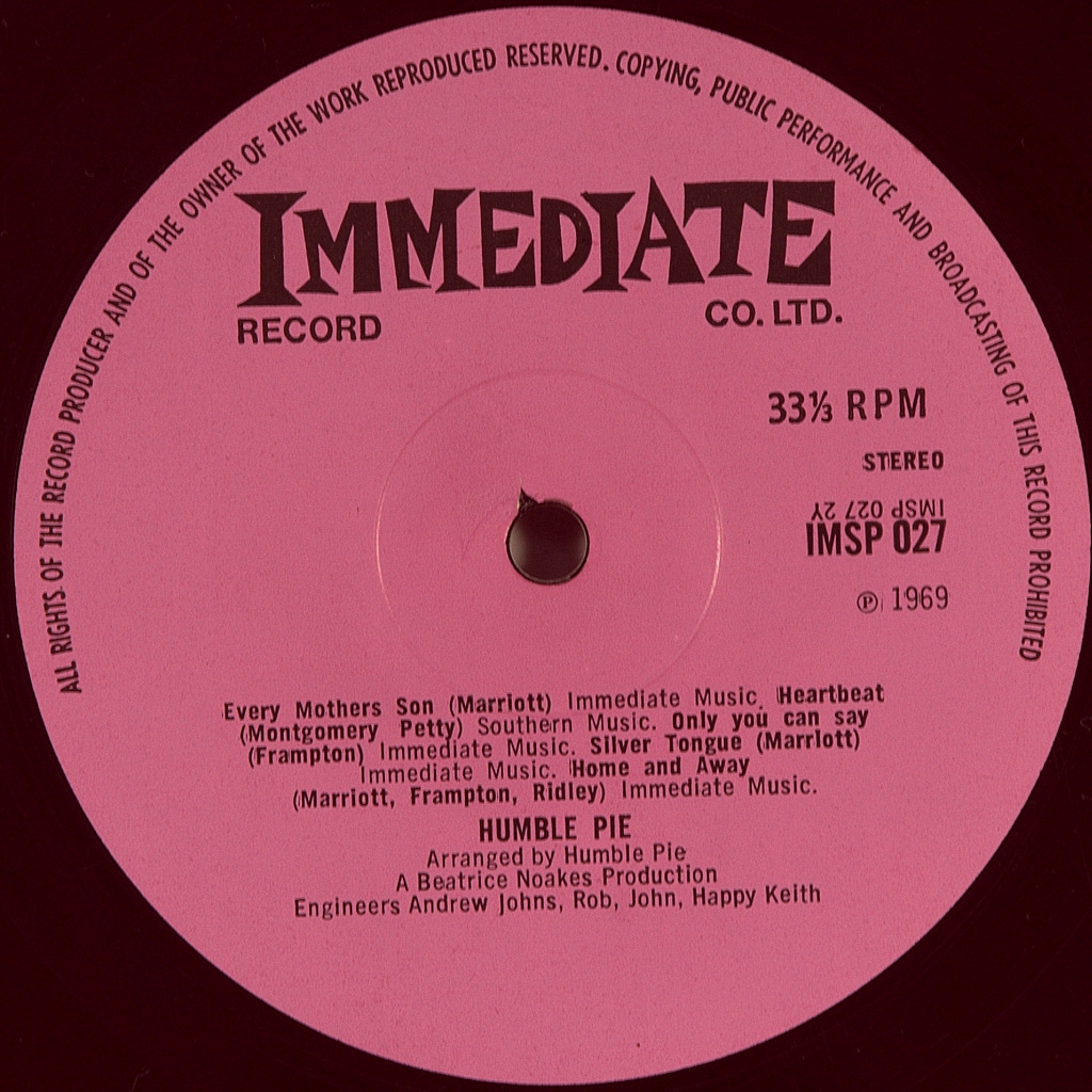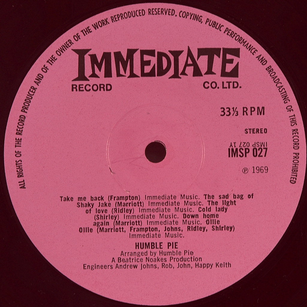 HUMBLE PIE-TOWN AND COUNTRY-1969-UK FIRST PRESS-IMMEDIATE-IMSP-027. Mega rare original cult Blues-prog-psychedelic band. Steve MARRIOTT was founded by Humble Pie in 1968 with Greg Ridley, Peter Frampton and Jerry Shirley. Their debut single "Natural Born Boogie" became a hit in the singles chart in the UK and was accompanied by the album as Safe as Yesterday Is, which climbed to sixteenth place in the charts of albums in the UK. Their second album, Town and Country was released in the UK in 1969 when the band was absent in his first U.S. tour. This album featured a more acoustic sound and songs written by all four members.