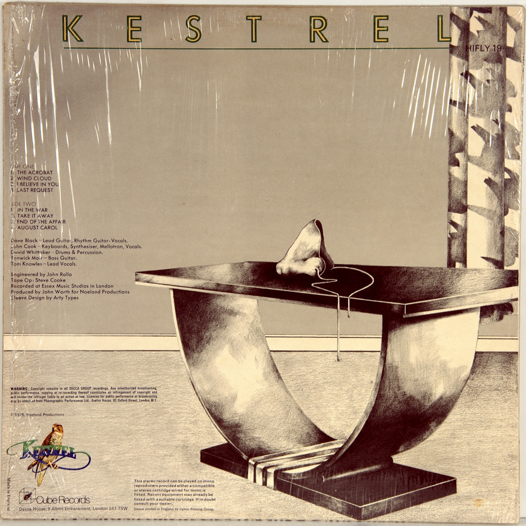 KESTREL-KESTREL-1975-FIRST UK PRESS-CUBE-HIFLY-19. Mega rare original prog school in Britain. Kestrel was self-sufficient musicians, and not pestered the recording companies. In the early 1970s, this symphonic rock quintet was playing in his pleasure in one of the London colleges. There guys have noticed, one John worth, an employee of a small division of the company Decca. So he helped young friends to produce in 1975 the first (and last)album, after thirty years of internationally recognized music lovers one of the most exciting releases of the second wave of the British art-rock. The basis of the disc was copyrighted material guitarist Dave Blake. Juicy, perfectly recorded compositions show excellent level of performance. The release is perceived in one breath, and only the goals set by the great Genesis, YES, Jethro Tull and King Crimson, not allows you to place it in the register of masterpieces. Strange, of course, it was limited to the sole plate. From the album just loaded to the gills with positive... Remains to add that in the future their abilities Dave Blake showed in the group of David Bowie and several own projects.