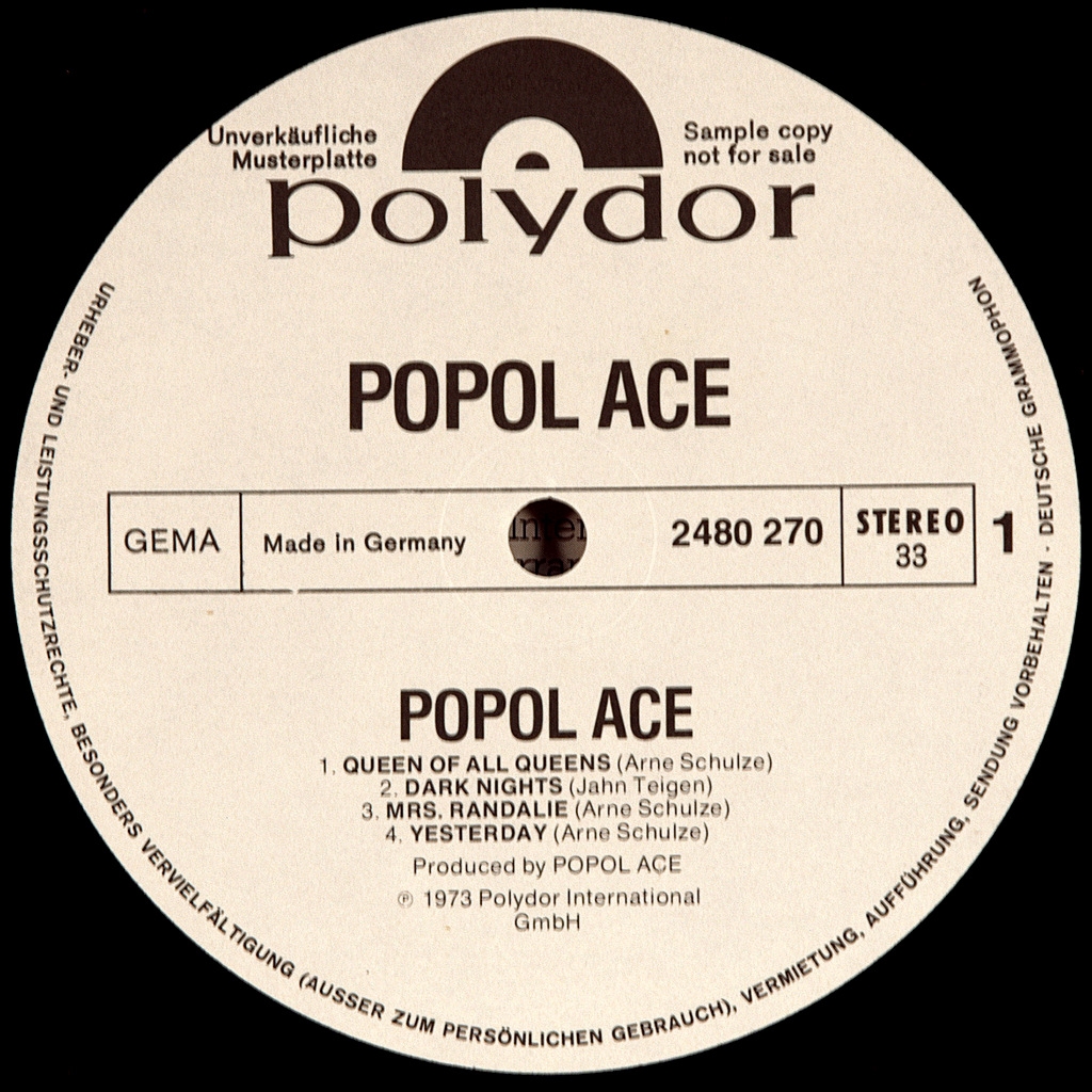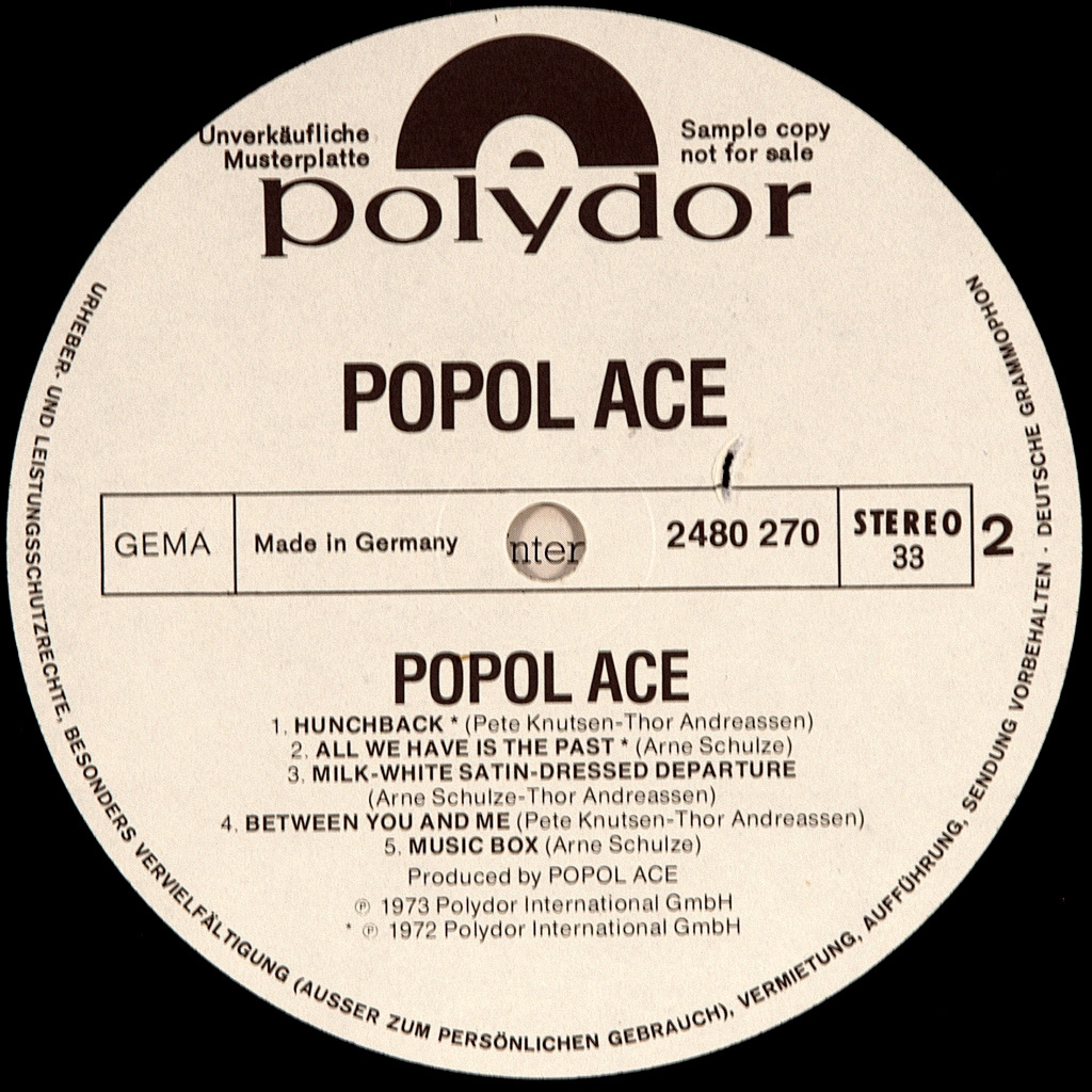 POPOL ACE-POPOL ACE-1973-FIRST PRESS (PROMO) GERMANY-POLYDOR-2480270. The only edition of the cult Norwegian progressive band POPOL VUH, which in 1973 changed its name to ACE POPL.