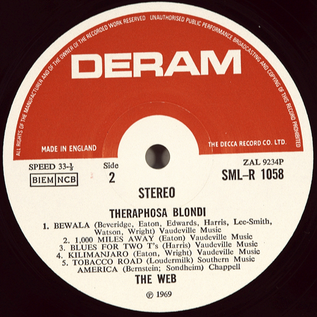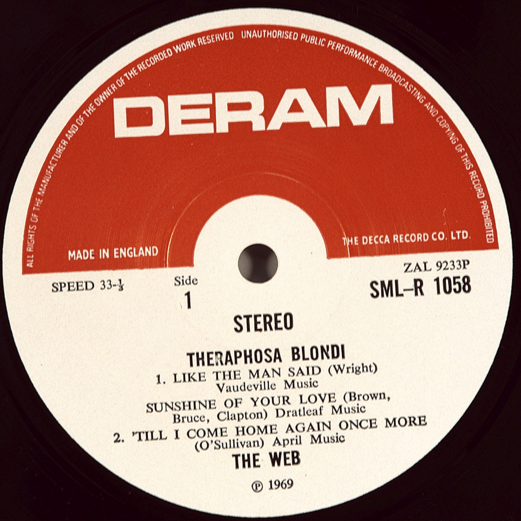 THE WEB-THERAPHOSA BLONDI-1969-FIRST UK PRESS-DERAM-SML-R 1058. Mega rare original second album by the British band. The first and the second album was recorded in a Blues vein, using elements of jazz and psychedelia. By the third album the band changed vocalist and is fully focused on the progressive with a jazz twist.