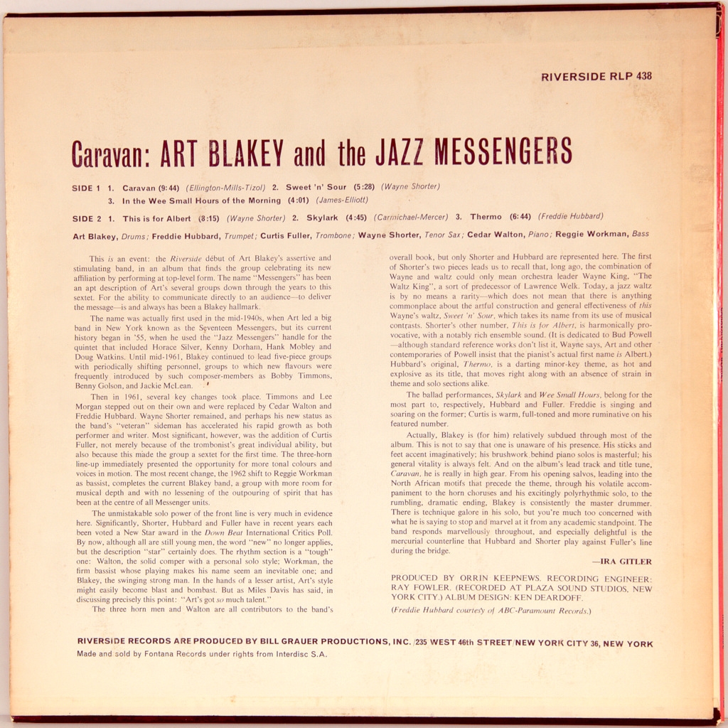 ART BLAKEY JAZZ MESSENGERS-CARAVAN-1962-FIRST UK PRESS-RIVERSIDE-RLP438. Rare British original cult j AVO album.