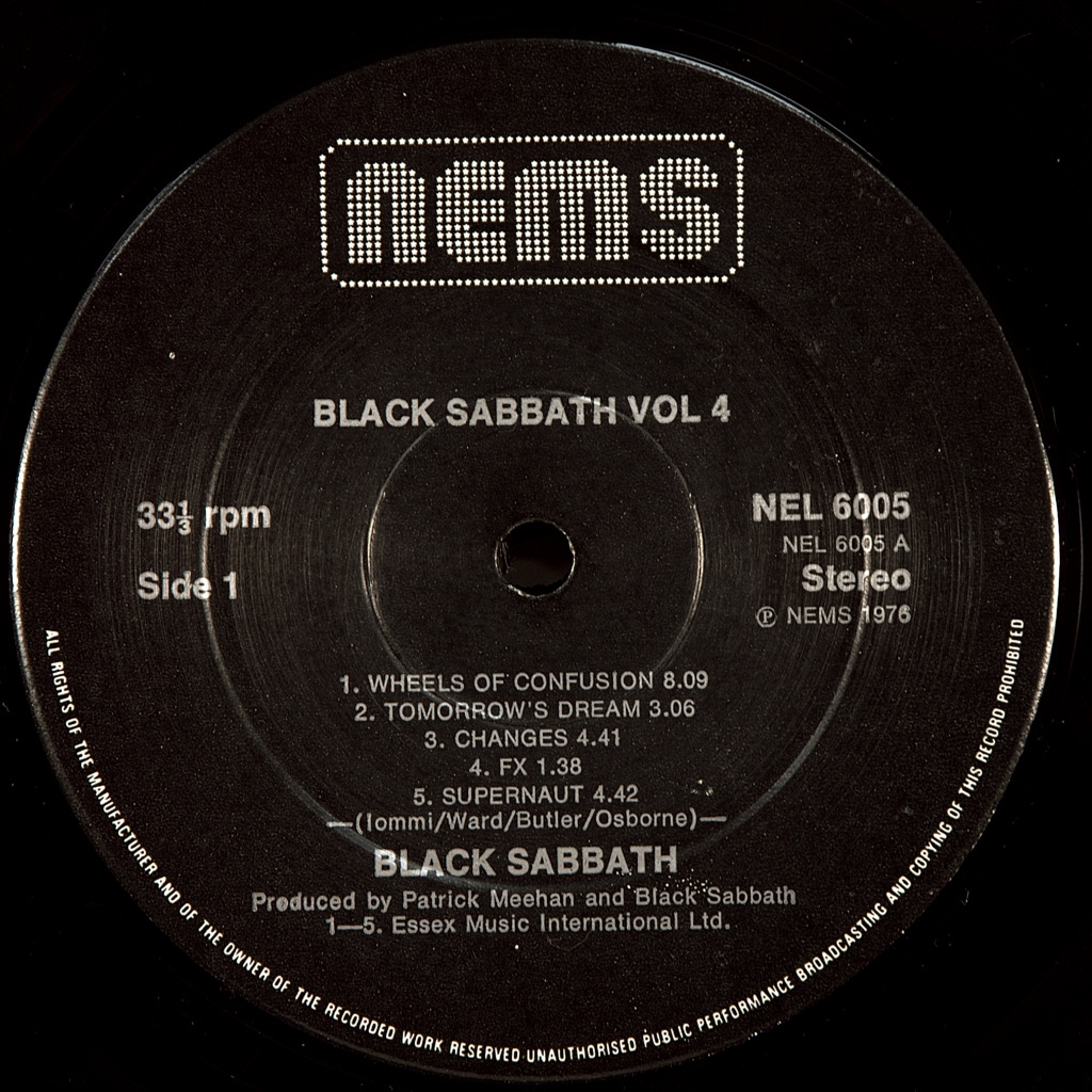BLACK SABBATH-BLACK SABBATH VOL 4 -1972 - ORIGINAL 1976 UK PRESS-NEMS-NEL6005. Rare early edition of the cult album. The album reached 8 on the UK Albums Chart and 13 on the Billboard 200. The Kerrang! put the album on 48th place in the list of "100 greatest metal albums of all time".In 2000 Q magazine placed Vol.4 on the 60th place in the list of "100 Greatest British albums".