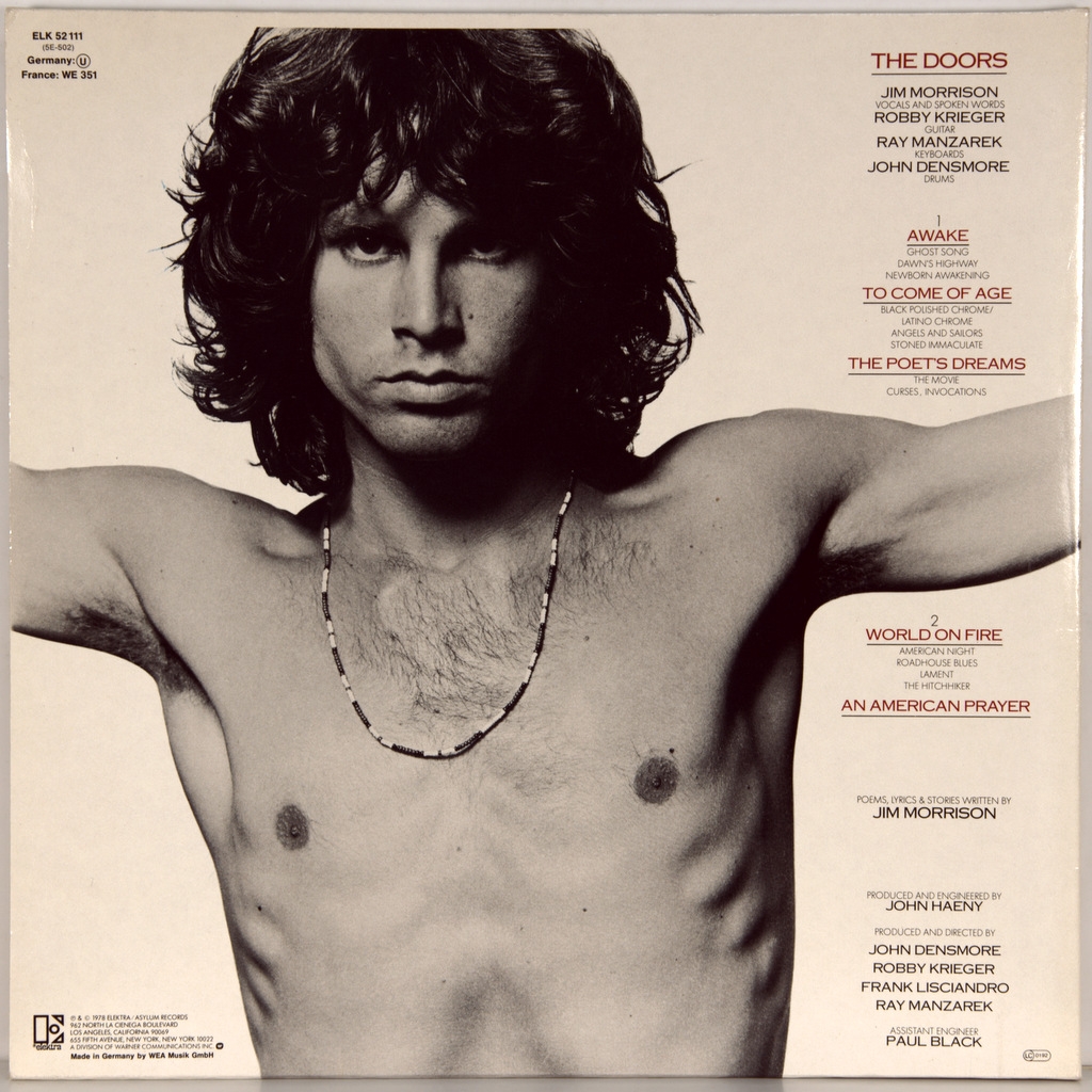 DOORS-AN AMERICAN PRAYER JIM MORRISON-1978-FIRST PRESS GERMANY-ELEKTRA-ELK52111. Rare German original in the complete set (booklet). An American Prayer is the ninth and final Studio album by American rock band the Doors, released in November 1978. An American Prayer — a collection of poems, poems and stories performed by the leader of the group — Jim Morrison, under which planted the musical rhythmic Foundation. The CD was released seven years after the death of Morrison and five years after the collapse of The Doors.