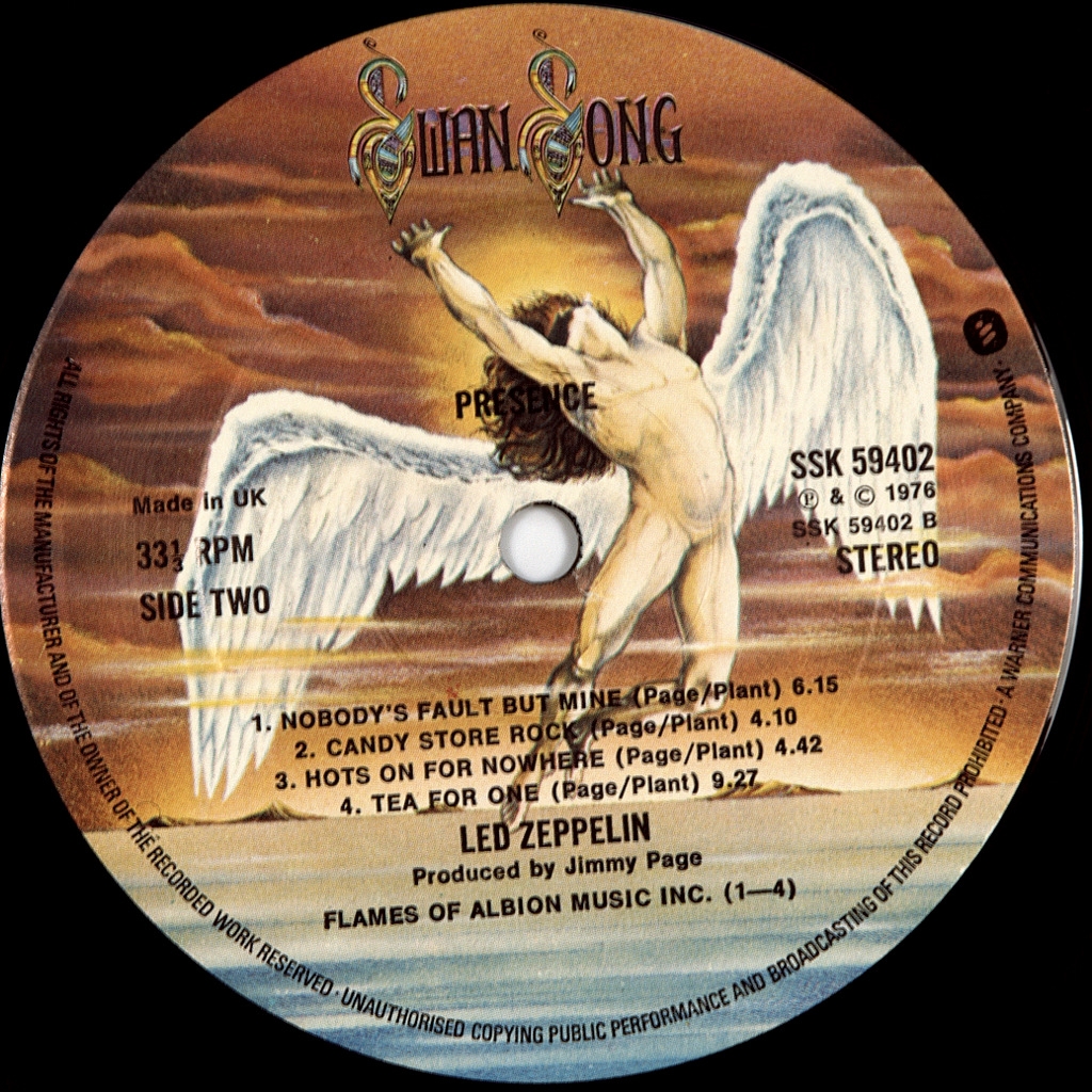 LED ZEPPELIN-PRESENCE-1976-FIRST UK PRESS-SWAN SONG room SSK59402. Rare British original in top condition.