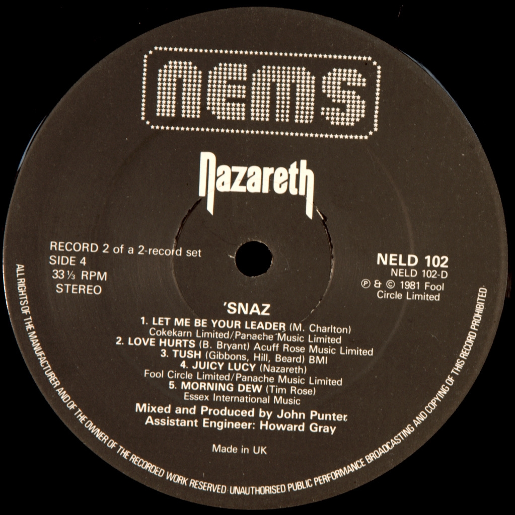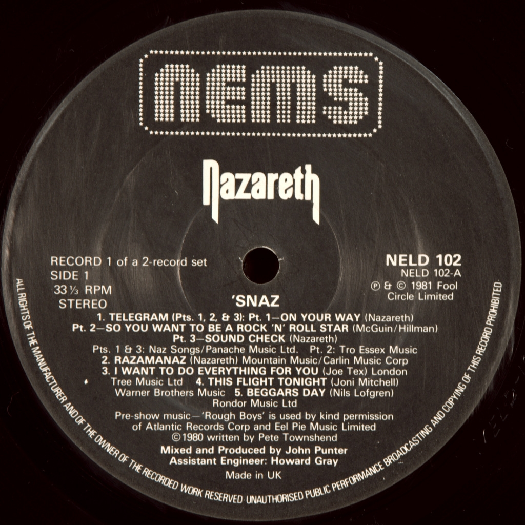 NAZARETH-SNAZ (2LP'S)-1981 - FIRST UK PRESS - NEMS-NELD102. Rare British original cult live concert.