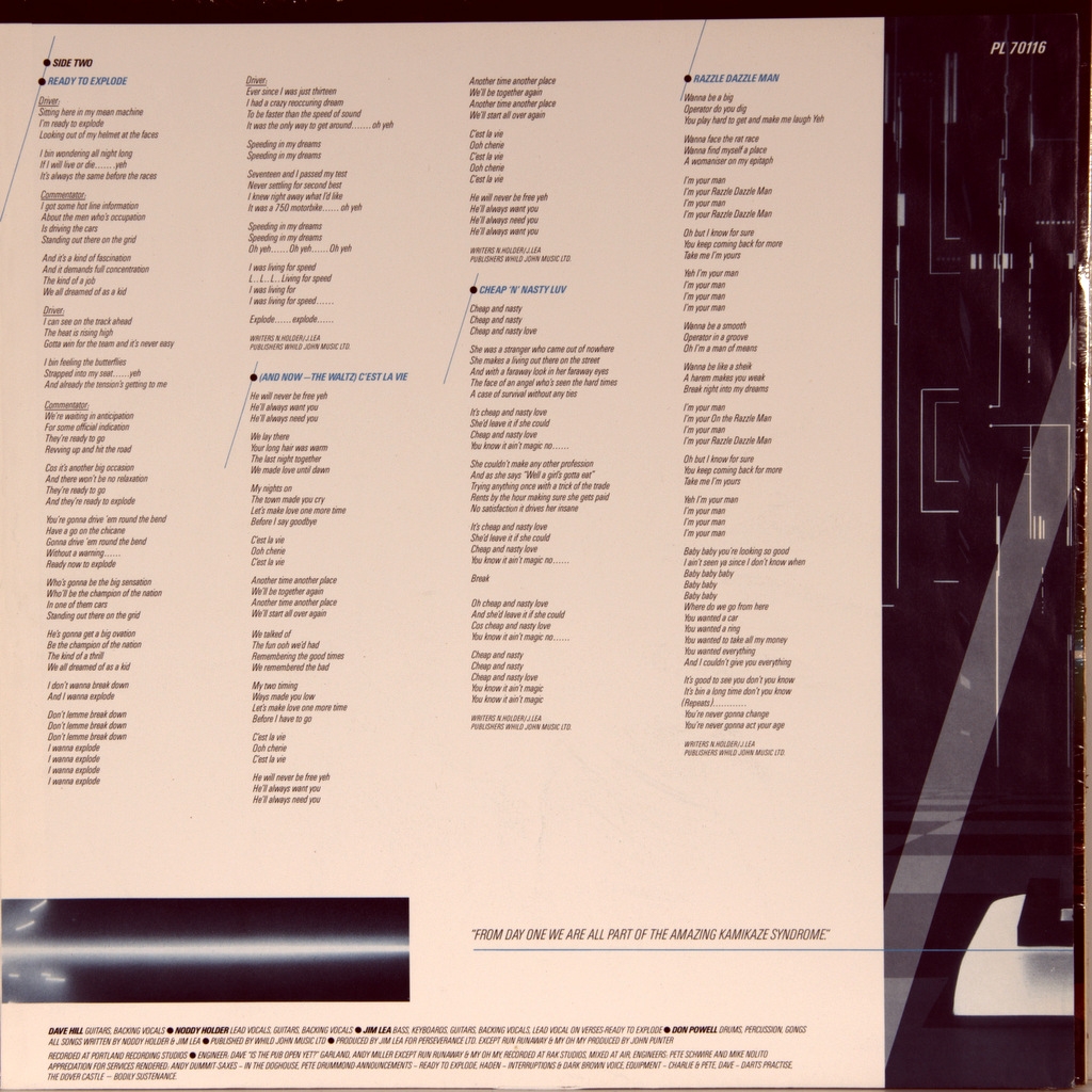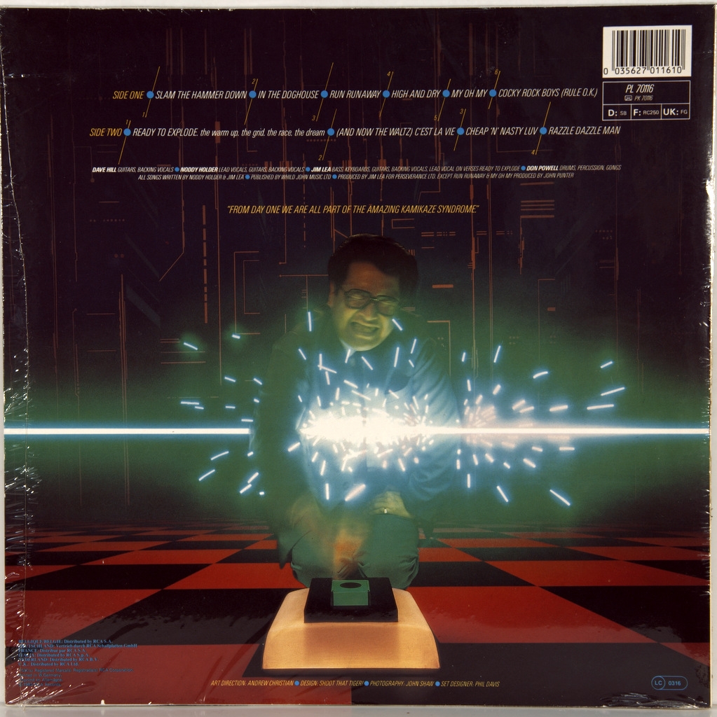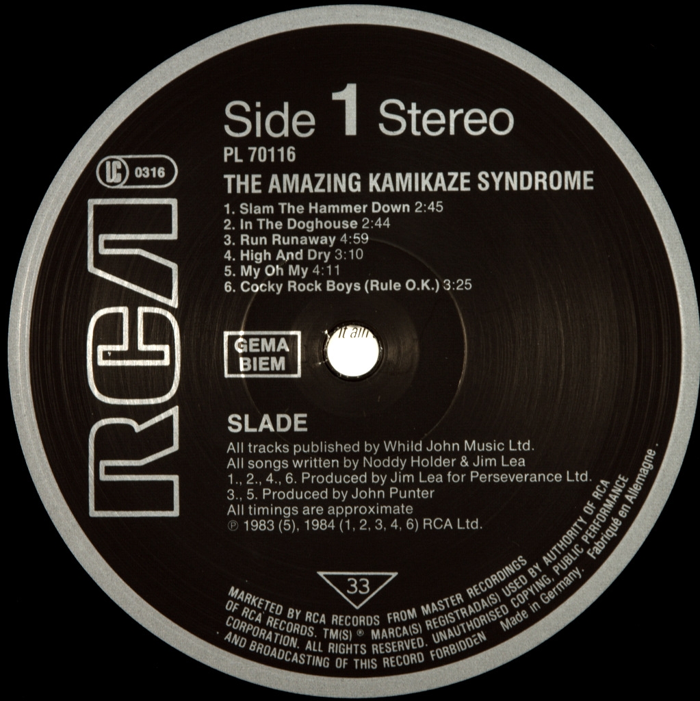 SLADE-THE AMAZING KAMIKAZE SYNDROME-1983-FIRST PRESS UK/EU(GERMANY)-RCA-PL70116. Rare original released only in Germany.The Amazing Kamikaze Syndrome is the eleventh Studio album by the British rock group Slade . It was released 3 December 1983 and reached number 49 in the UK charts. The album was produced mostly by bassist Jim Lea.