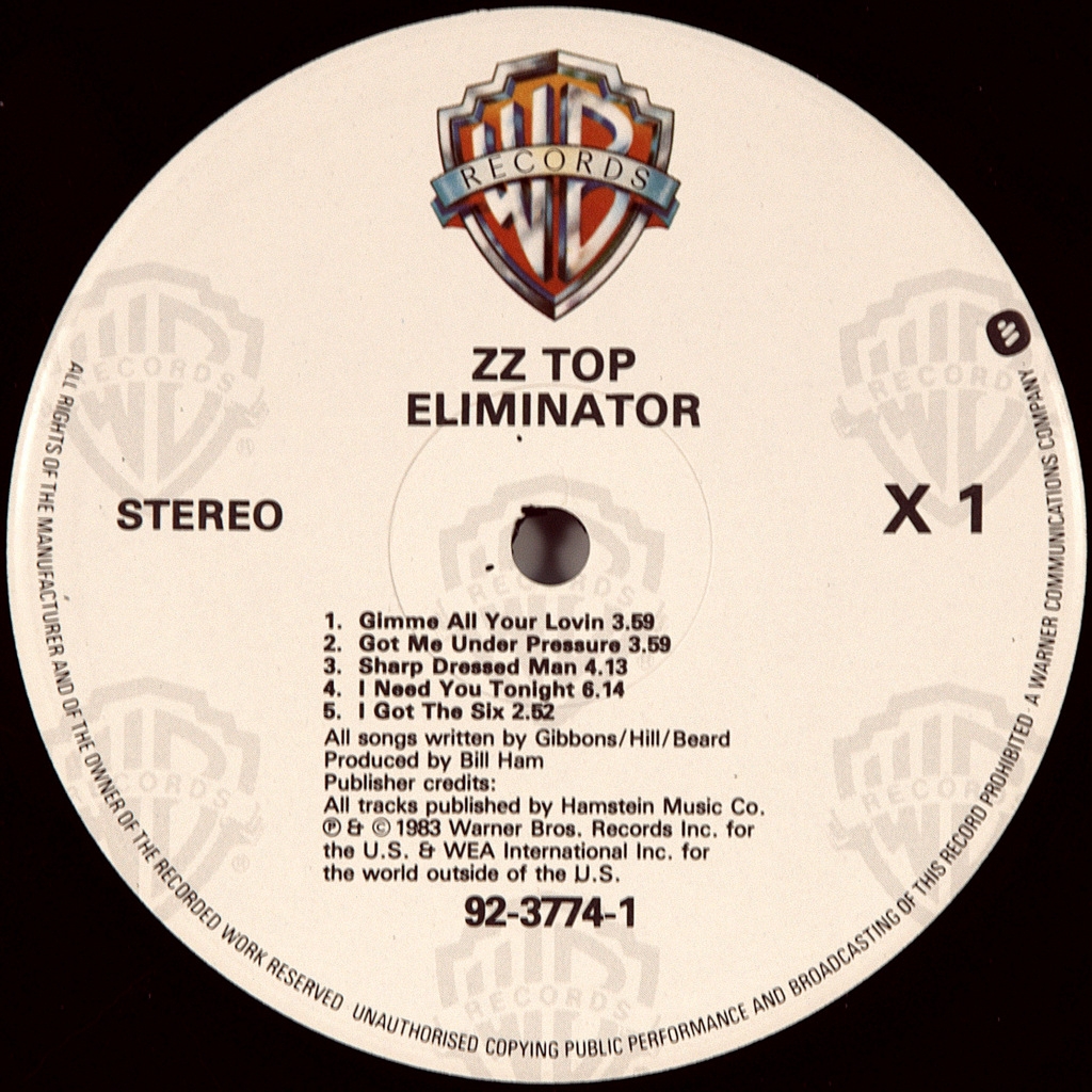 ZZ TOP-ELIMINATOR-1983-FIRST UK PRESS-WARNER-92-3774-1. Very rare British original released in very small quantities as plants WARNER during this period endured in Europe. Eliminator (eng. Eliminator) is the eighth Studio album by rock band ZZ Top, released 23 March 1983 on Warner Bros. Records. One of the most successful albums in its history, which reached diamond status in the USA (on 7 August 1996 sold 10 000 000 copies) included in the top ten of The Billboard 200 and stayed there for 135 weeks.