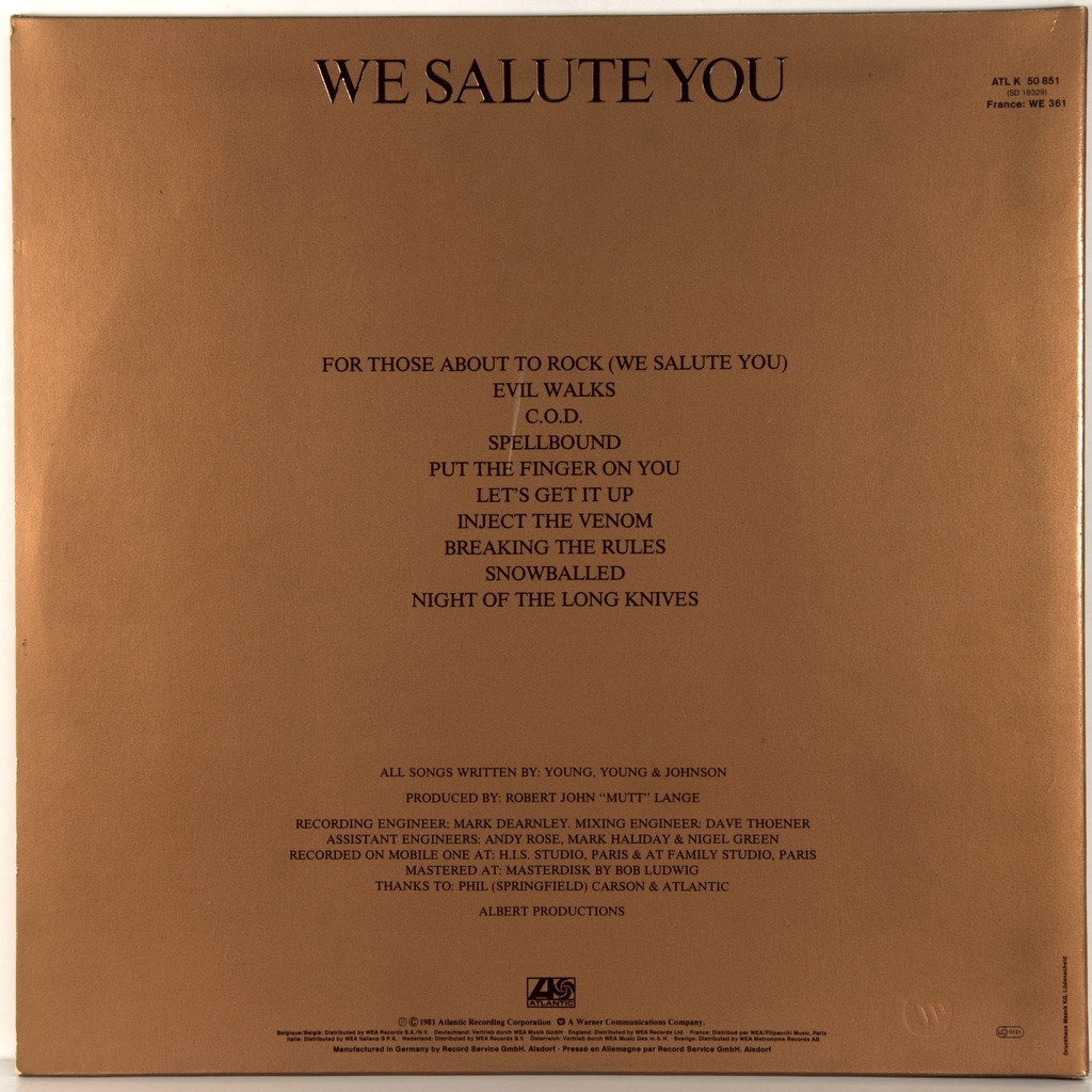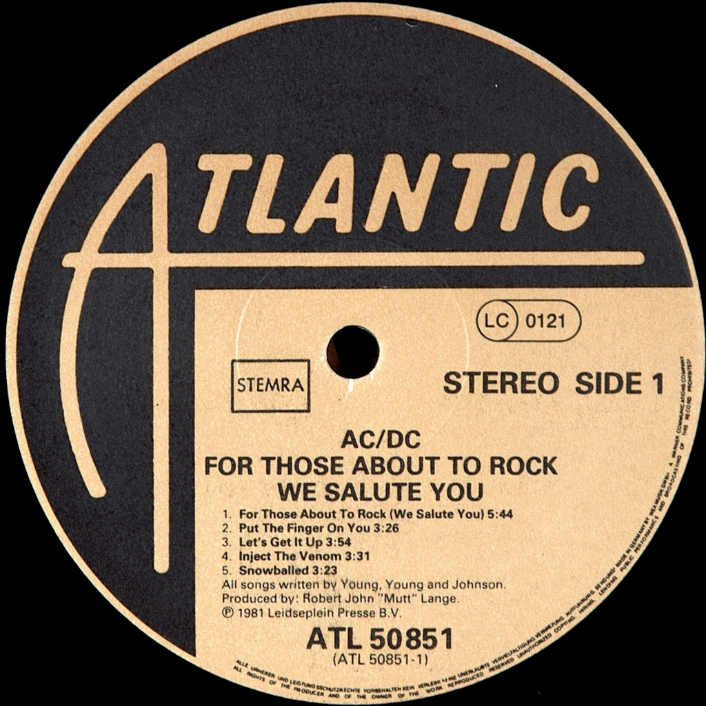 AC/DC-FOR THOSE ABOUT TO ROCK-1981-FIRST PRESS UK/EU-GERMANY -ATLANTIC-ATL50851. For Those About to Rock (We Salute You) — Studio album by Australian rock band AC/DC, released in 1981 on Atlantic Records