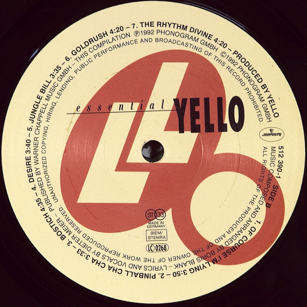 YELLO-ESSENTIAL-1992-FIRST PRESS UK/EU GERMANY MERCURY-512390-1. Mega rare original compilation the best singles on the MTV. The album received gold status in all European countries. In ALLMUSIC rating received five stars.