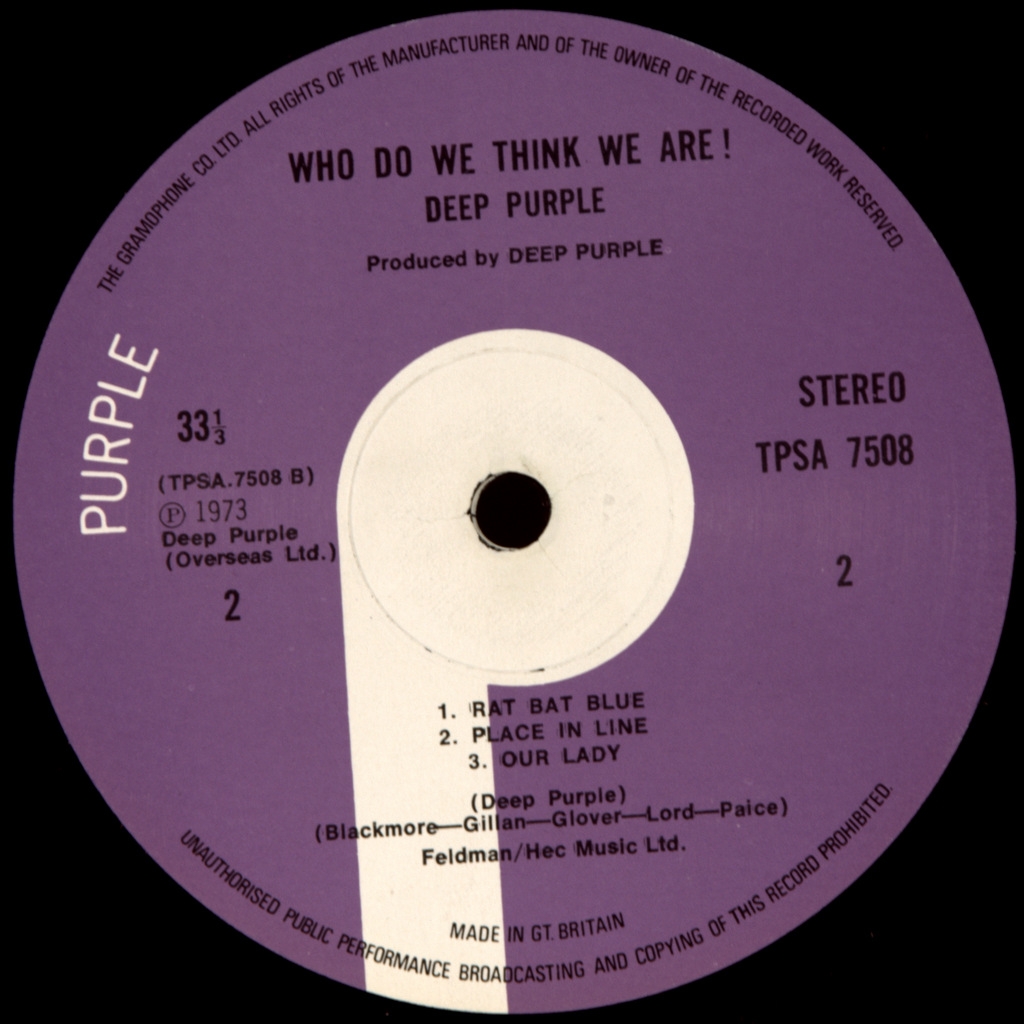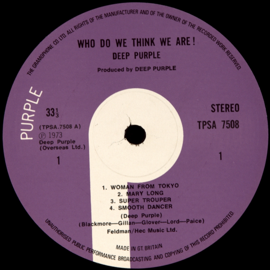 DEEP PURPLE-WHO DO WE THINK WE ARE-1973-first uk press-purple rec.-TPSA7508. Matrix A-1U/B-1U . Rare British original cult album.