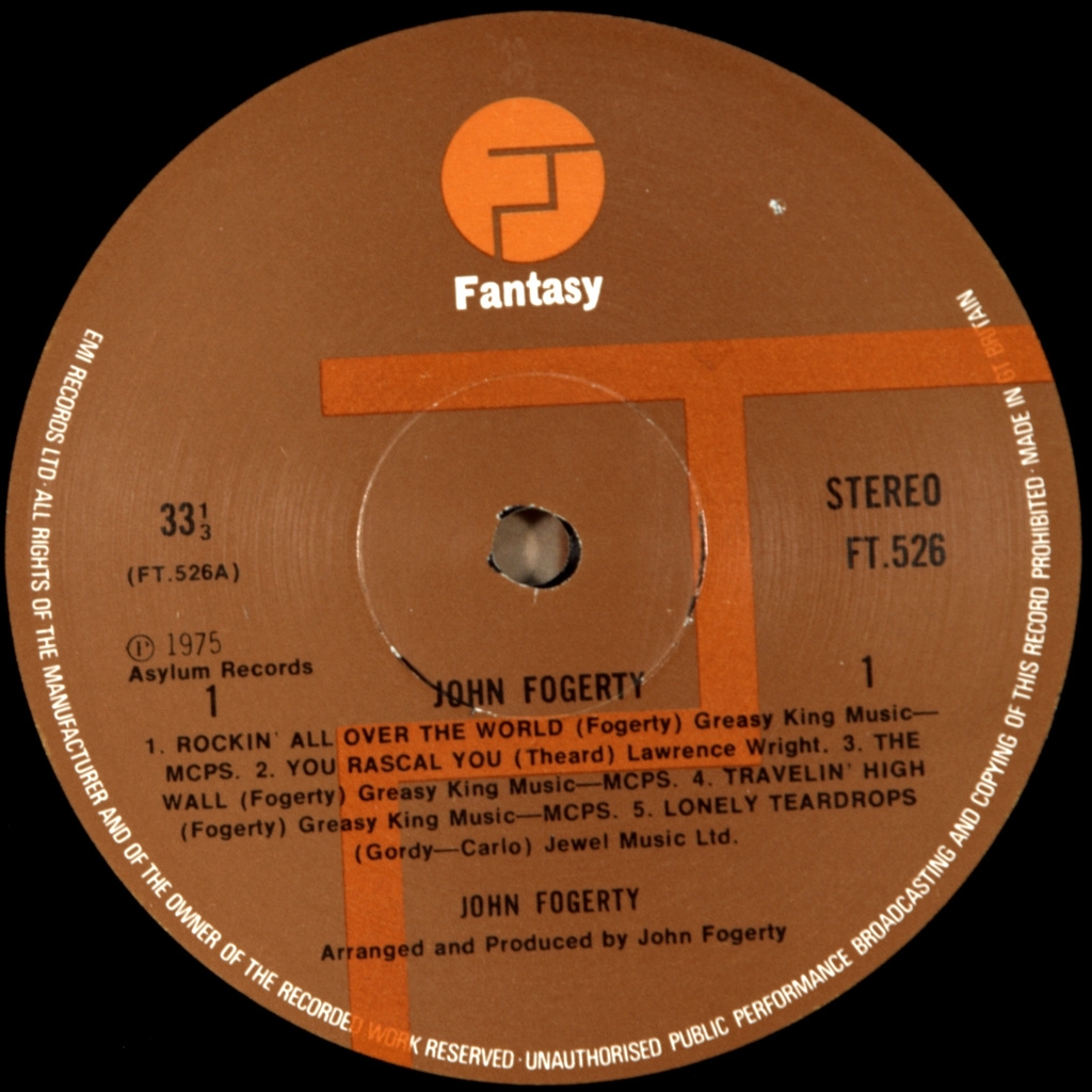 FOGERTY, JOHN - JOHN FOGERTY-1975-FIRST UK PRESS-FANTASY - FT526.Of The Matrix A-1/B-1. Rare British original . John Fogerty is the second solo Studio album by former vocalist / guitarist of Creedence Clearwater Revival John Fogerty, released in 1975. As in the case with the albums of Creedence Clearwater Revival, the album consists of a mixture of originals and cover versions.