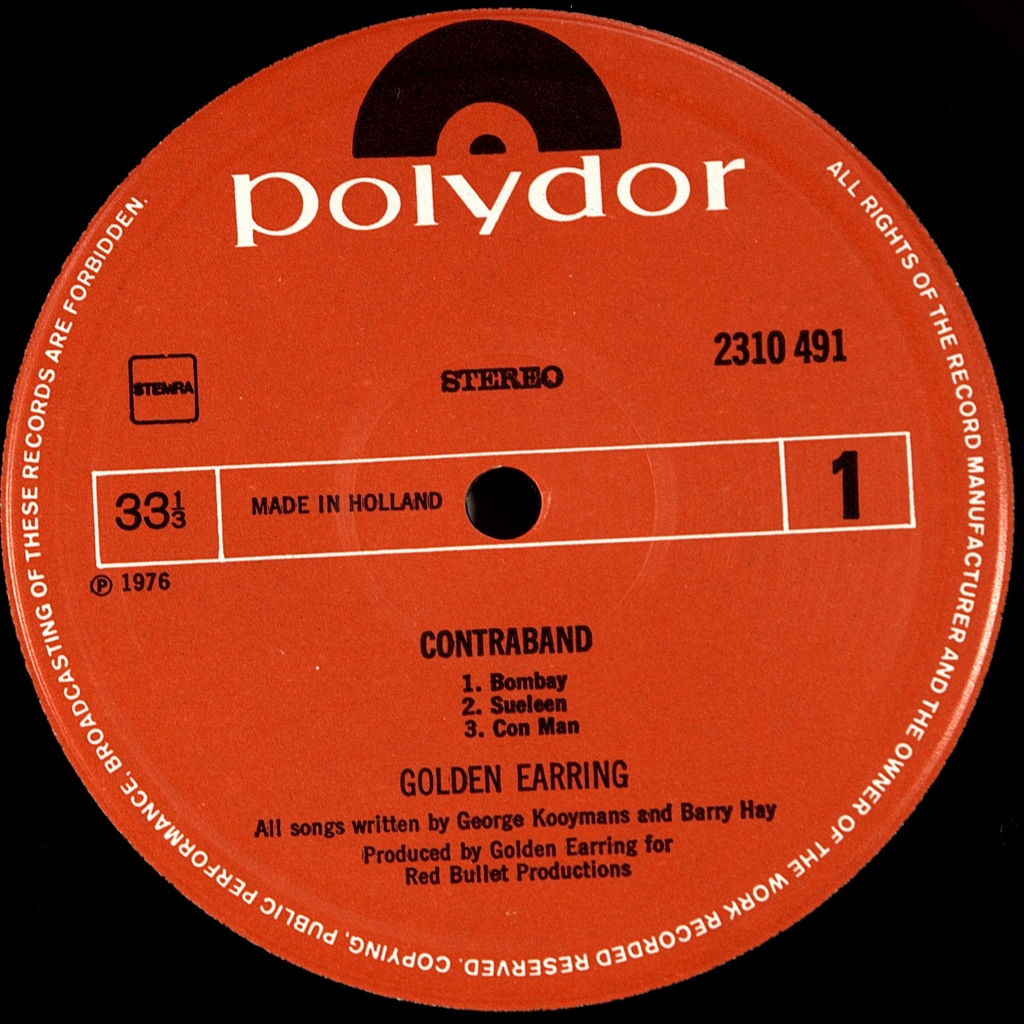 GOLDEN EARRING-CONTRABAND-1976-FIRST HOLLAND PRESS-POLYDOR-2310491. Of The Matrix A-1/B-1. Rare original cult band. Contraband is an album by Dutch rock band Golden Earring, released in 1976. For the USA the same recordings were released under the album title Mad Love the following year (1977). This American version also had a different cover and song order. In addition, the song "Faded Jeans" were deleted and replaced with the track "I Need Love".