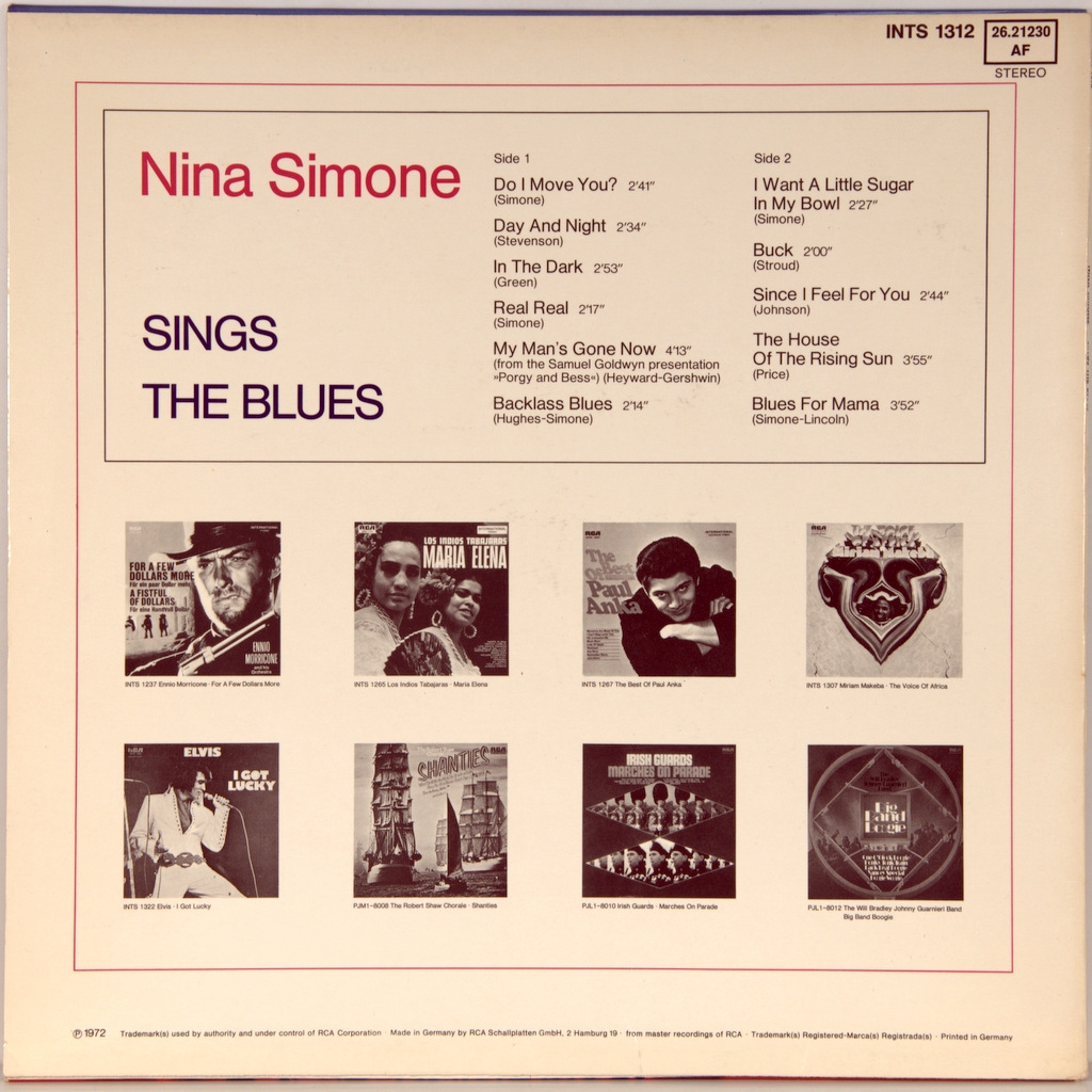 SIMONE, NINA - SINGS THE BLUES-1967-ORIGINAL PRESS 1971-GERMANY-INTS1212. An early edition of the cult album from the genius of jazz vocals.