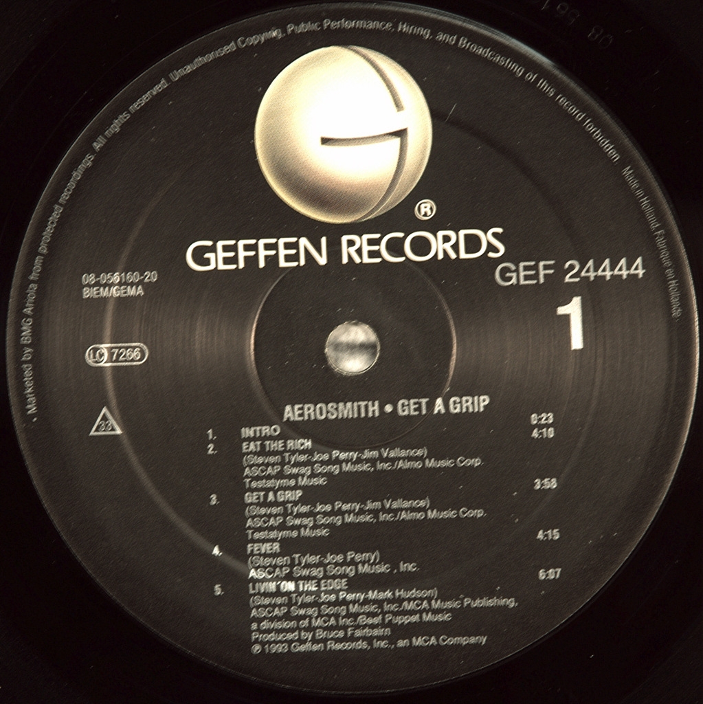 AEROSMITH-GET A GRIP (2LP)-1993-FIRST PRESS UK/EU-HOLLAND-GEFFEN -GEF24444. Mega rare double album of the cult American legends of hard rock.Get a Grip was the best-selling Aerosmith album worldwide (sold 20 million copies) Get a Grip became the third bestselling disc Aerosmith in the United States. In 1995, its sales amounted to 7 million copies. Two songs from the LP, became winners of the award "Grammy" in the nomination "the Best vocal rock performance by a Duo or group" in 1993 and 1994.