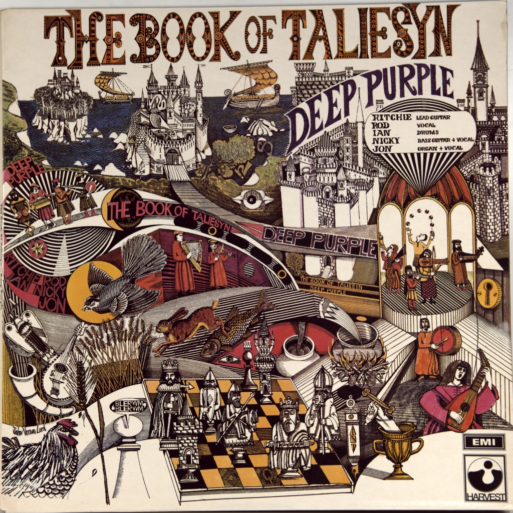 DEEP PURPLE-BOOK OF TALIESYN-1968-ORIGINAL PRESS 1969 UK-HARVEST-SHVL751. Matrices A-1G/B-1G. Stamper 2GO/1GD (Very early!). A rare original 1969 edition of the cult album. The Book of Taliesyn is the second studio album by the British band Deep Purple. It was released in the USA in October 1968 on the Tetragrammaton Records label, and in the UK in June 1969 on the Harvest label named after the "Book of Taliesin" — a Welsh manuscript of the first half of the XIV century, including the oldest Welsh poems, many of which are attributed to the poet Taliesin (VI century). The album cover was drawn by illustrator John Vernon Lord.