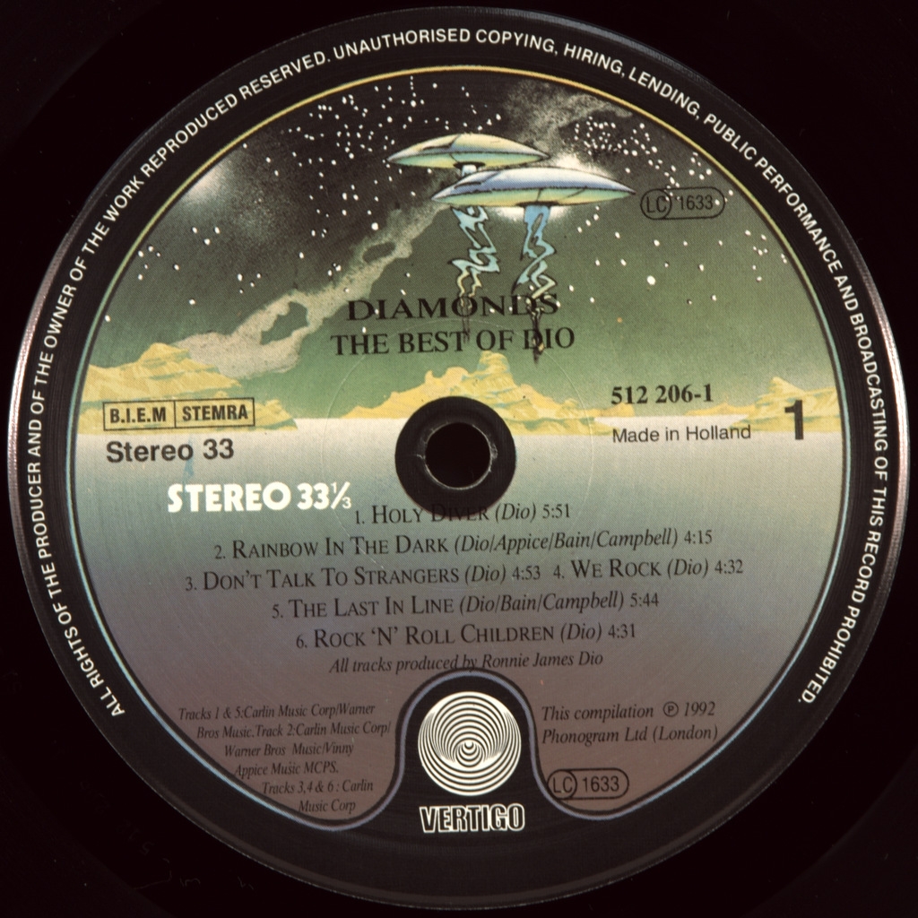 DIO-DIAMONDS-THE BEST OF DIO-1992-FIRST HOLLAND PRESS-VERTIGO. Very rare limited original . Diamonds - The Best of Dio is a greatest hits collection by the heavy metal band Dio.