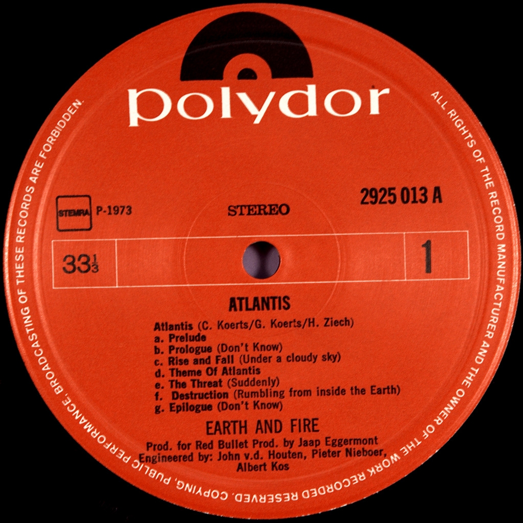 EARTH & FIRE-ATLANTIS-1973-FIRST HOLLAND PRESS-POLYDOR 2925019. Rare original one of the best Dutch prog bands.