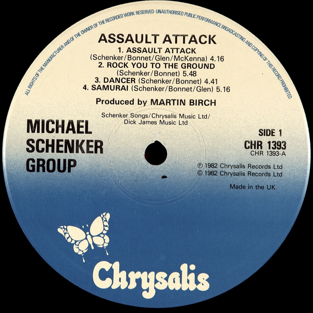 MICHAEL SCHENKER GROUP – ASSAULT ATTACK-1982-FIRST UK PRESS-CHRYSALIS -CHR1393. Rare original third Studio album, The Michael Schenker Group , and the only album featuring former Rainbow vocalist Graham Bonnet. In 2005, Assault Attack was ranked 481-e a place in the book of Rock Hard magazine 500 greatest rock metal albums of all time .