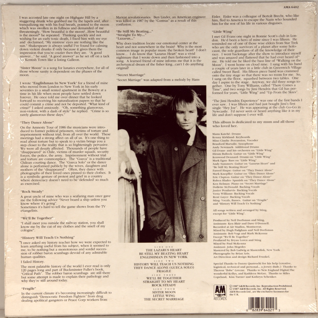 STING – ...NOTHING LIKE THE SUN (2LP)-1987-FIRST UK PRESS-A&M-AMA-6402. Very rare original British cult album. ...Nothing Like the Sun is the second Studio album by British rock musician sting, was issued October 13, 1987. The album won in the category "Best British album" at the Brit Awards in 1988.