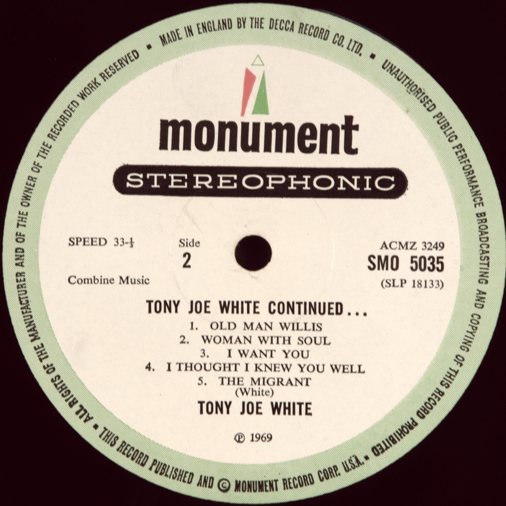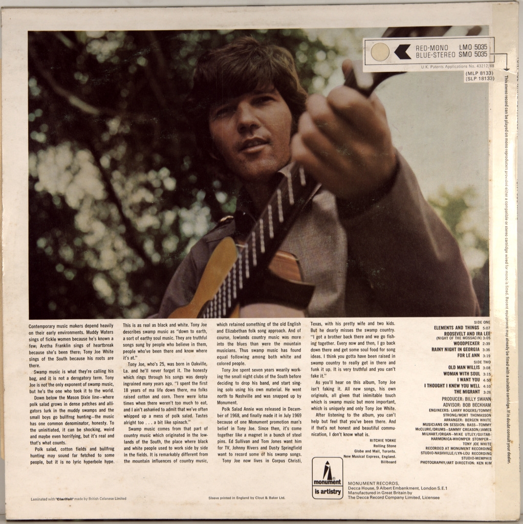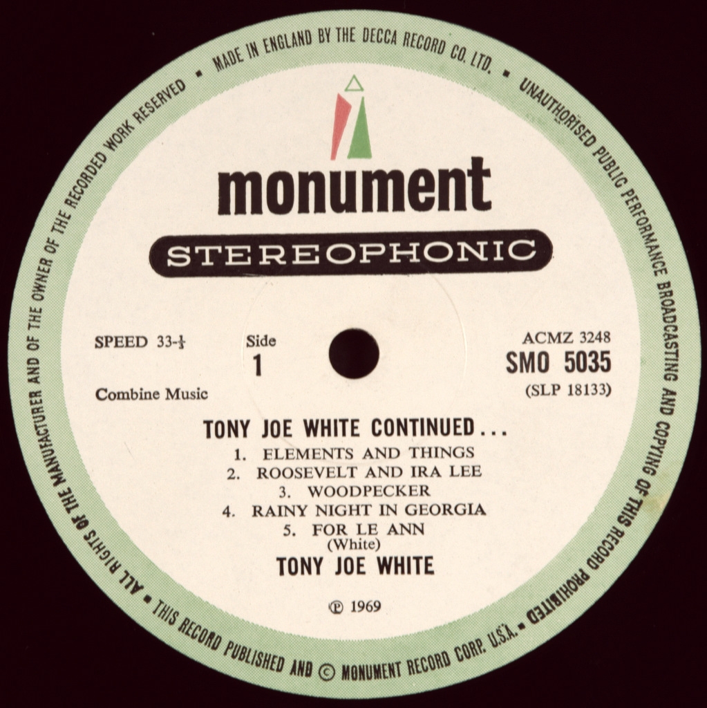 TONY JOE WHITE – ...CONTINUED-1969-UK FIRST PRESS-MONUMENT-SMO5035. Very rare original Blues master. Continued is the second album by Tony Joe White. It was released on Monument Records and contained the single Roosevelt and Ira Lee. It was recorded at Monument Studios, Nashville and Lyn-Lou Studios, Memphis in 1969. It reached # 4 pop single and # 2 Adult Contemporary chart , respectively. RIAA certified the single gold for sales of one million copies. In 2004, he took the 498-th place in the list of the 500 greatest songs of all time Rolling Stone .