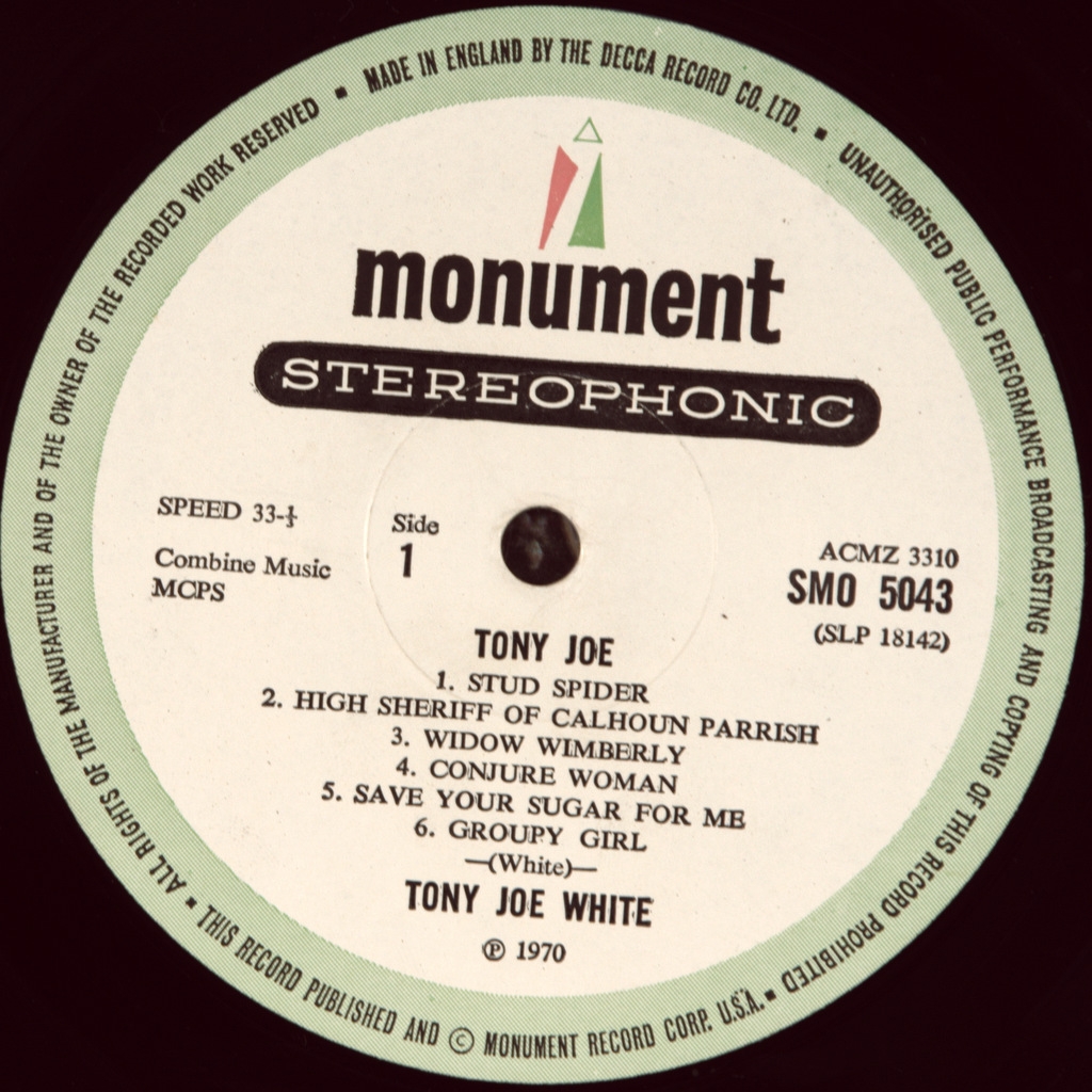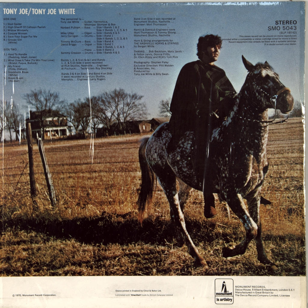 TONY JOE WHITE-TONY JOE-1970-FIRST UK PRESS-MONUMENT - SMO5043.Very rare British original's third album, is known for its fantastic Blues romance.Tony Joe is the third album released by Tony Joe white. in the 1970's.This album Tony conquered Europe. The album was ranked No. 8 on the Billboard Hot 100.