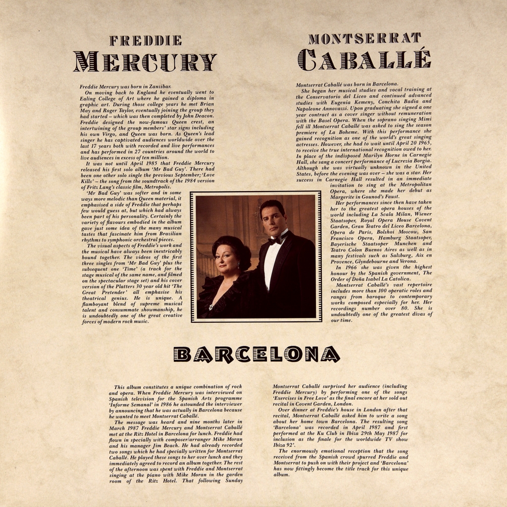 MERCURY, FREDDIE/CABALLE, MONTSERRAT BARCELONA 1988-FIRST UK PRESS-POLYDOR-POLH44. Barcelona is the second Studio album by Freddie Mercury, released 10 October 1988. Recorded with Opera singer Montserrat Caballe. The second and last lifetime solo album Freddie Mercury. The disc is recorded in 1987-1988, the Studio Mountain Studios. The idea of Freddie Mercury with the involvement of the Symphony orchestra was not implemented because of lack of time, and in the end the album was partially arranged synths and drum machine. The song "Barcelona", which gave the name to the album, became the anthem of the city hosting the Summer Olympics in 1992 in Spain.
