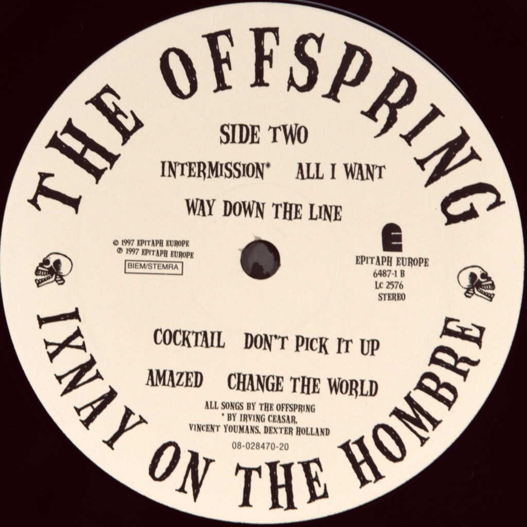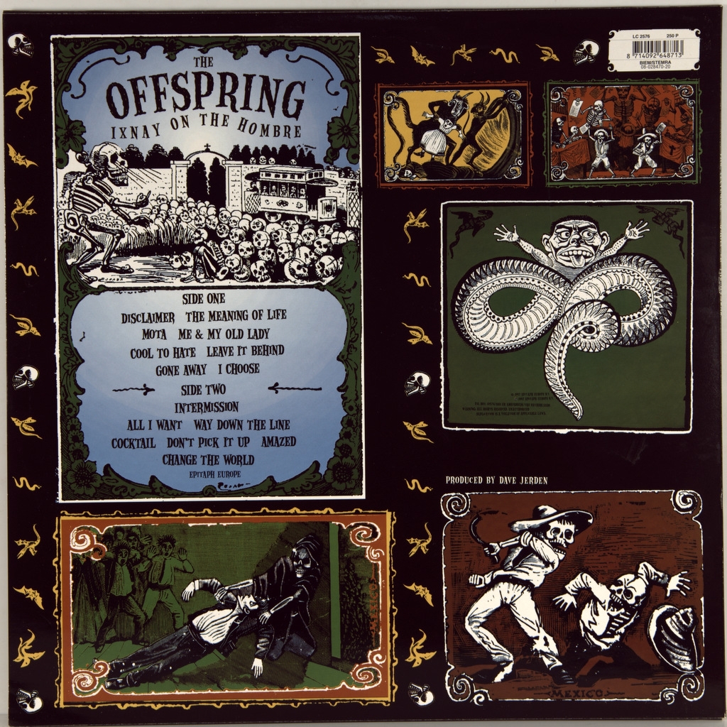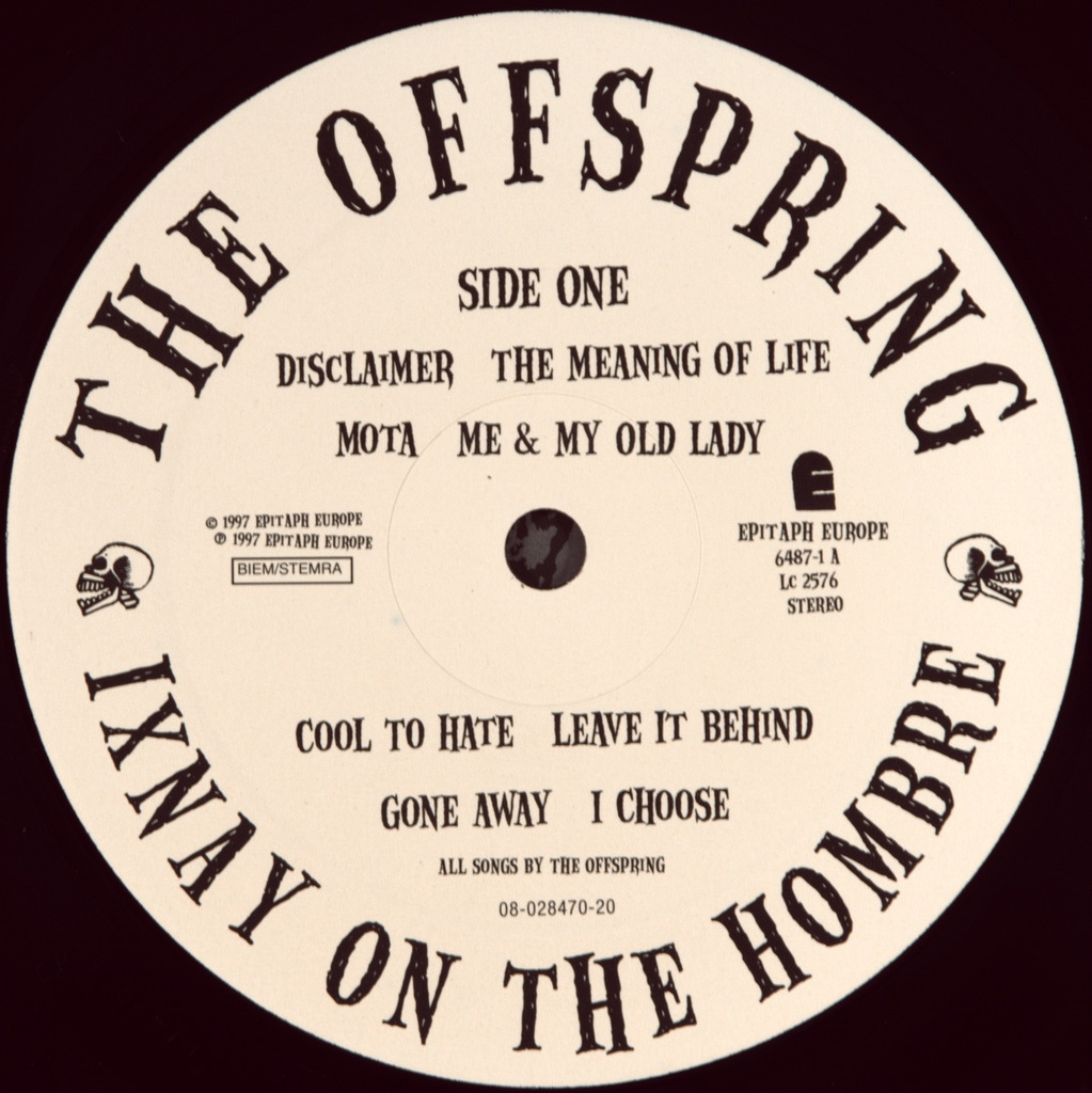 OFFSPRING-IXNAY ON THE HOMBRE-1997-FIRST PRESS UK/EU-EPITAPH-648713. Mega rare original the cult hard rock band of the 90s. Ixnay on the Hombre is the fourth album by American punk rock band the Offspring, was released on 4 February 1997. After the major success of the album Smash, the band returned to the Studio in 1996 to record their next album, which was titled Ixnay on Hombre. The name combines pig Latin ("Ixnay" version of the word "nix") and the word "Hombre" (which translated from Spanish means people). Ixnay on the Hombre was released on February 4, 1997 and is the first album The Offspring distributed by Columbia Records. Their former label Epitaph Records released it in Europe due to disagreements between the band and label founder Brett Gurewitz. The group was able to release his album under the label of Columbia for the US and other international releases, but had to finish the album in Europe through Epitaph. The Offspring continued to release albums in Columbia until early 2013, it was announced that they fulfilled their contract with the label. The album peaked at number 9 in the Billboard 200