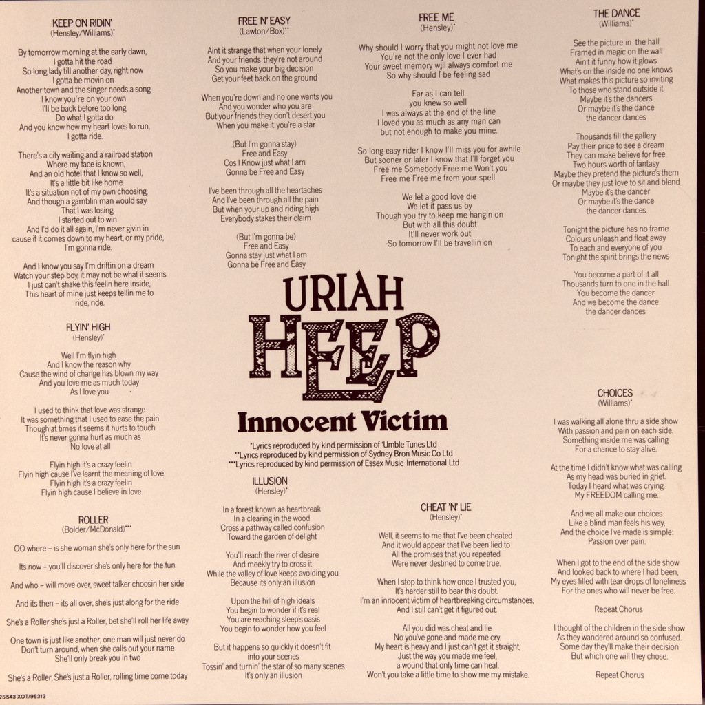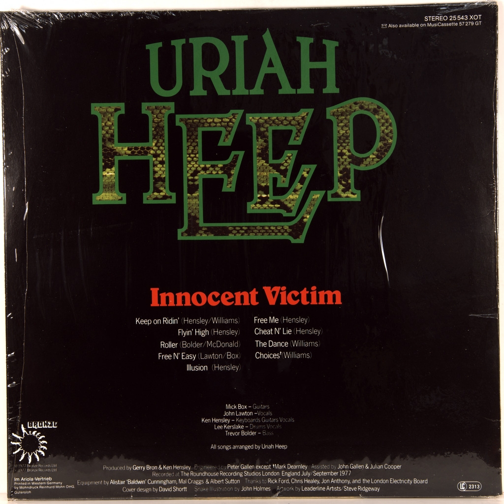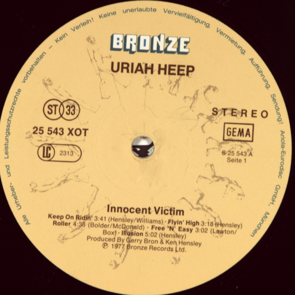 URIAH HEEP-INNOCENT VICTIM-1977-FIRST GERMANY PRESS-BRONZE 25543XOT. Innocent Victim - the 11th Studio album by British hard rock band Uriah Heep , released in November 1977 Bronze Records UK and Warner Bros. Records in the United States. Innocent Victim was sold 100,000 copies in Germany alone, the Album reached No. 19 and No. 44 in New Zealand and Avstraliyu Single, "Free Me" was a smash hit # 3 in New Zealand and peaked at number 3 in South Africa.