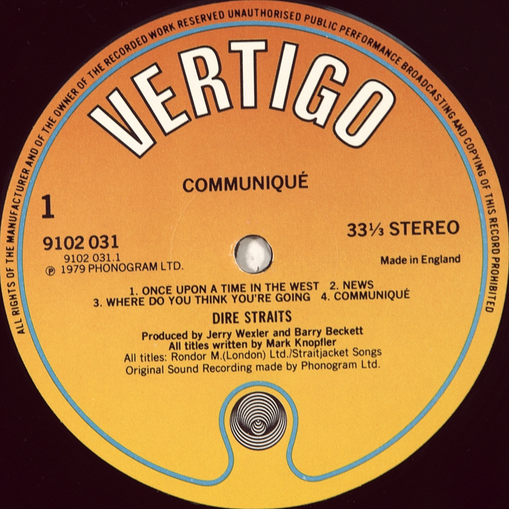DIRE STRAITS-COMMUNIQUE-1979-ORIGINAL 1980 UK PRESS-VERTIGO - 9102031. Rare early British edition of the iconic album.Communiqué is the second Studio album by British rock band Dire Straits, released in 1979.