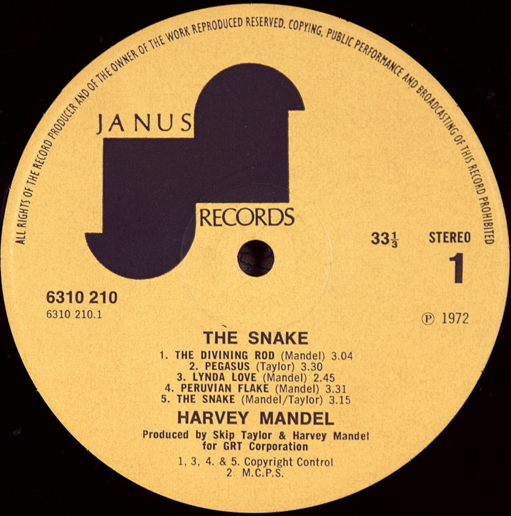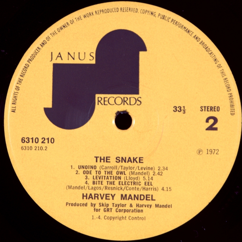 HARVEY MANDEL-THE SNAKE-1972-FIRST UK PRESS-JANUS-6310210. Very rare British original Blues-progressive album.