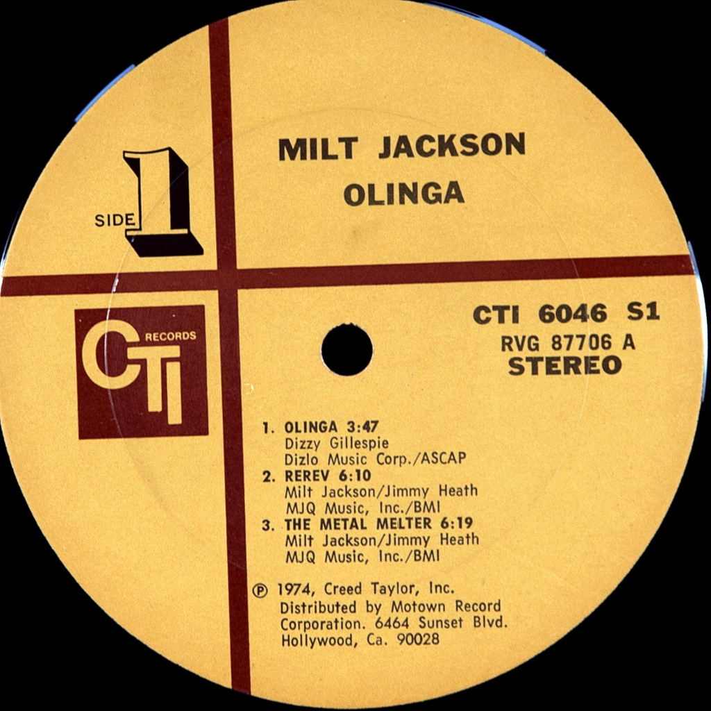 MILT JACKSON-OLINGA-1974-FIRST PRESS USA-CTI-CTI6046. Master disk Van Gelder. Freddie a Rare original of the famous vibraphonist in the company's top jazz musicians.