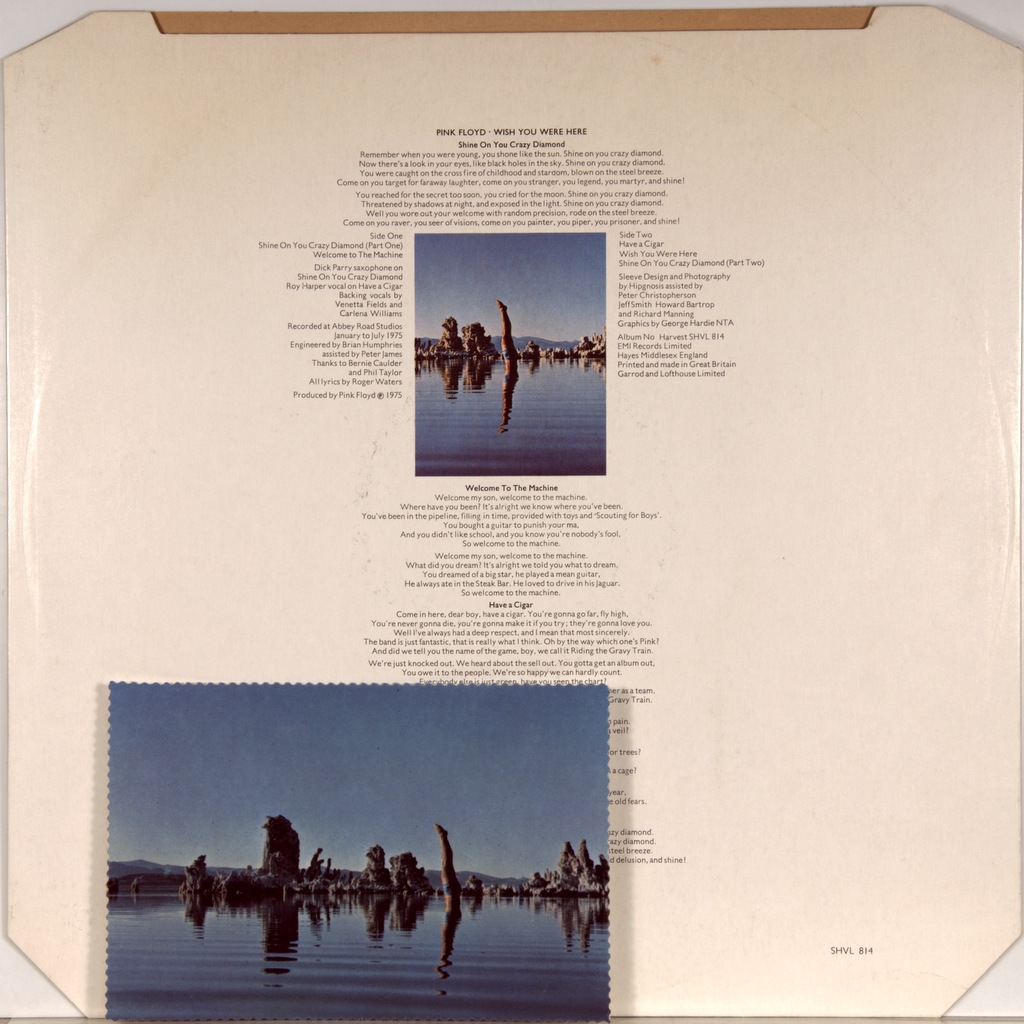 PINK FLOYD-WISH YOU WERE HERE-1975-FIRST UK PRESS-HARVEST-room SHVL814 of the matrix A-1/B-5 .Mega rare British original in it's entirety. By Rolling Stone magazine the album was delivered to the 209-e a place in the list of five hundred greatest albums of all time. Richard Wright and David Gilmour called Wish You Were Here their favourite album recorded in Floyd. In the first week after its release, the album became gold in the UK. By may 1997, the album is already six times became platinum