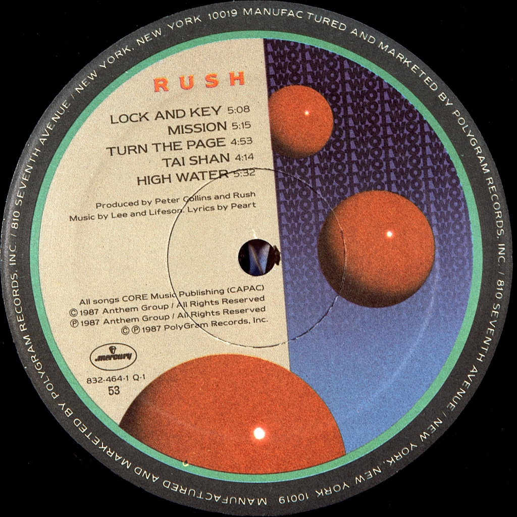 RUSH-HOLD YOUR FIRE-1987-FIRST USA PRESS-MERCURY-8324640-1. Rare American original. Hold Your Fire is the twelfth Studio album by canadian rock band Rush, was published in 1987. It was the last work of the group issued on such labels as PolyGram/Mercury, which are regularly released from the disk group outside of Canada. On this disc, Rush continued to experiment with new musical directions. The song "Tai Shan" was written under the influence of classical Chinese music, its name refers to mount tai in China's Shandong province.