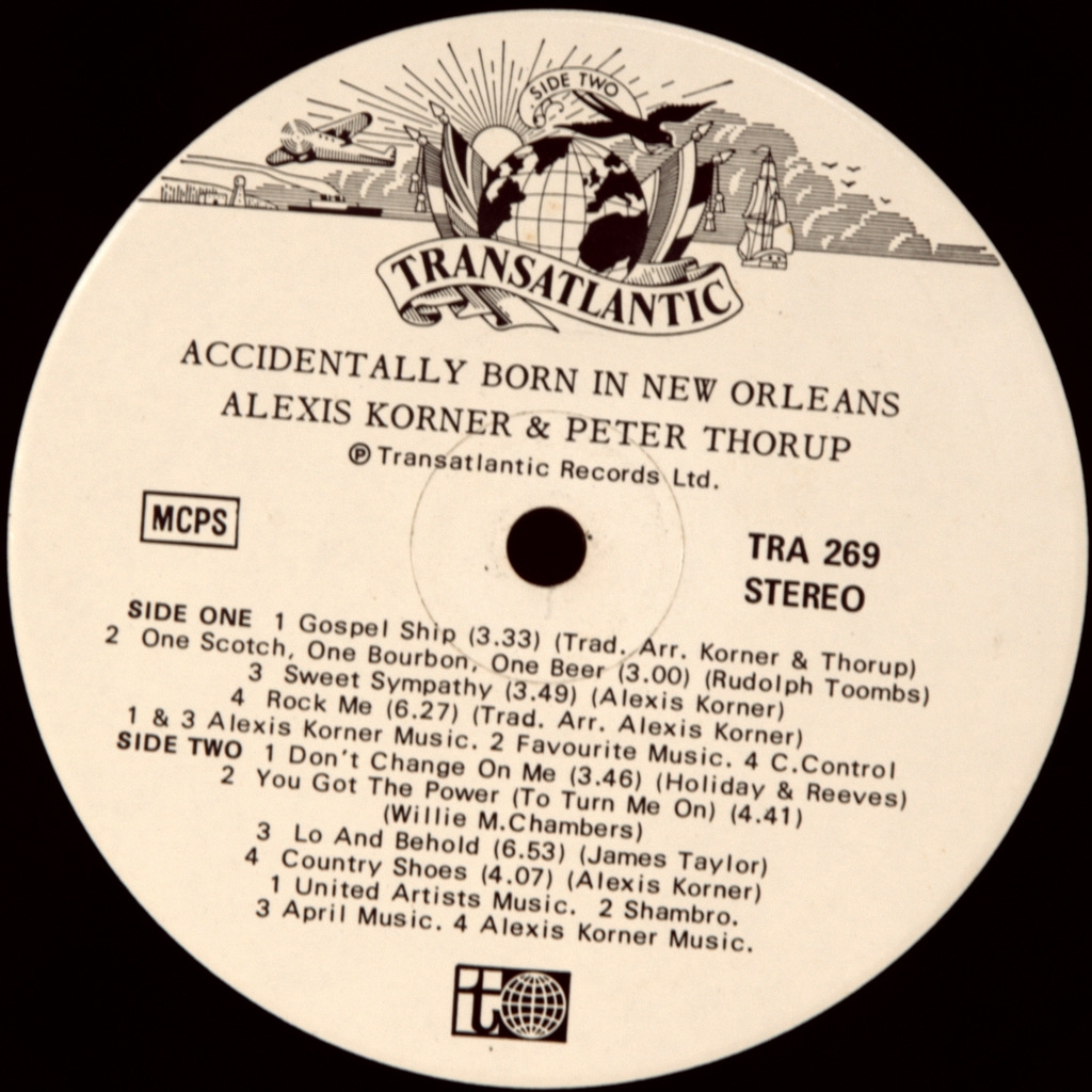 ALEXIS KORNER & PETER THORUP-ACCIDENTALLY BORN IN NEW ORLEANS-1973-FIRST UK PRESS-TRANSATLANTIC-TRA269. Rare British original two Blues masters.