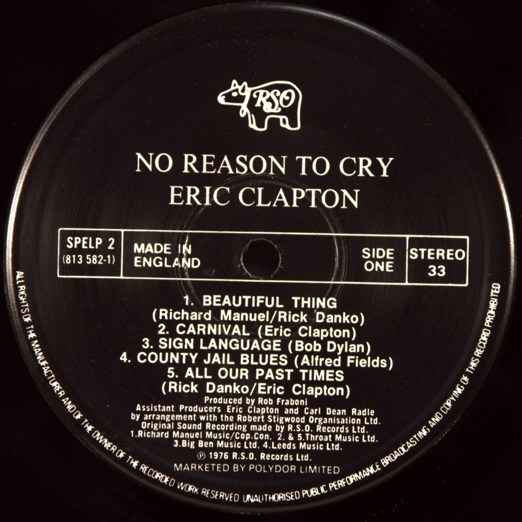 CLAPTON, ERIC-NO REASON TO CRY-1976-ORIGINAL PRESS 1983 UK-RSO-SPELP2. .Rare early British edition of the iconic album. The album was recorded by canadian-American group The Band and Bob Dylan.