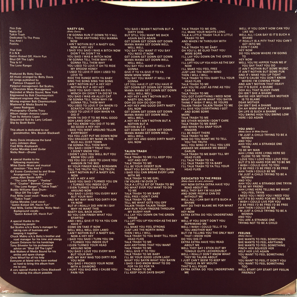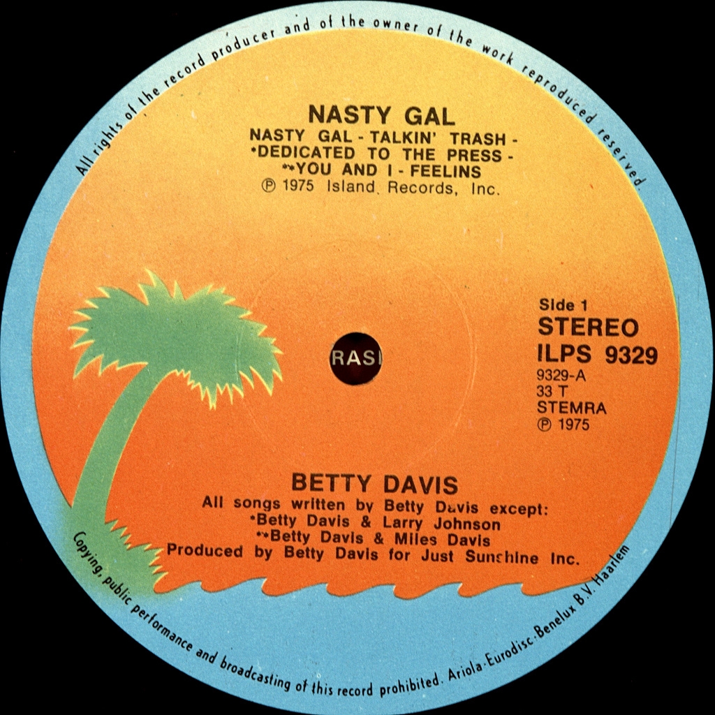 DAVIS, BETTY-NASTY GAL-1975-FIRST HOLLAND PRESS-room ISLAND ILPS-9329 . Rare original Betty in the style of funk , Blues, rock . The wife of the great Miles Davis.