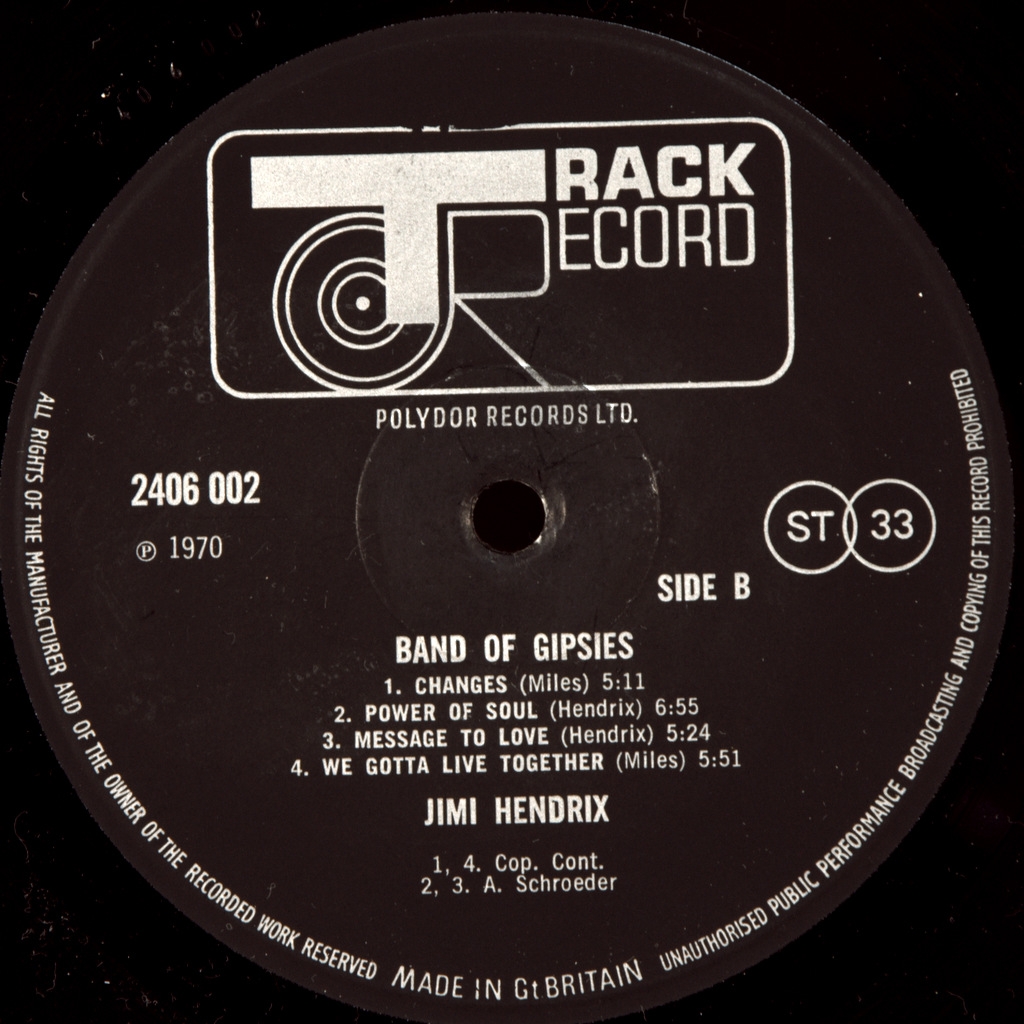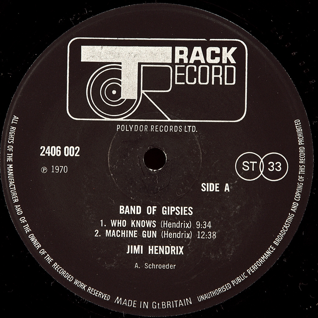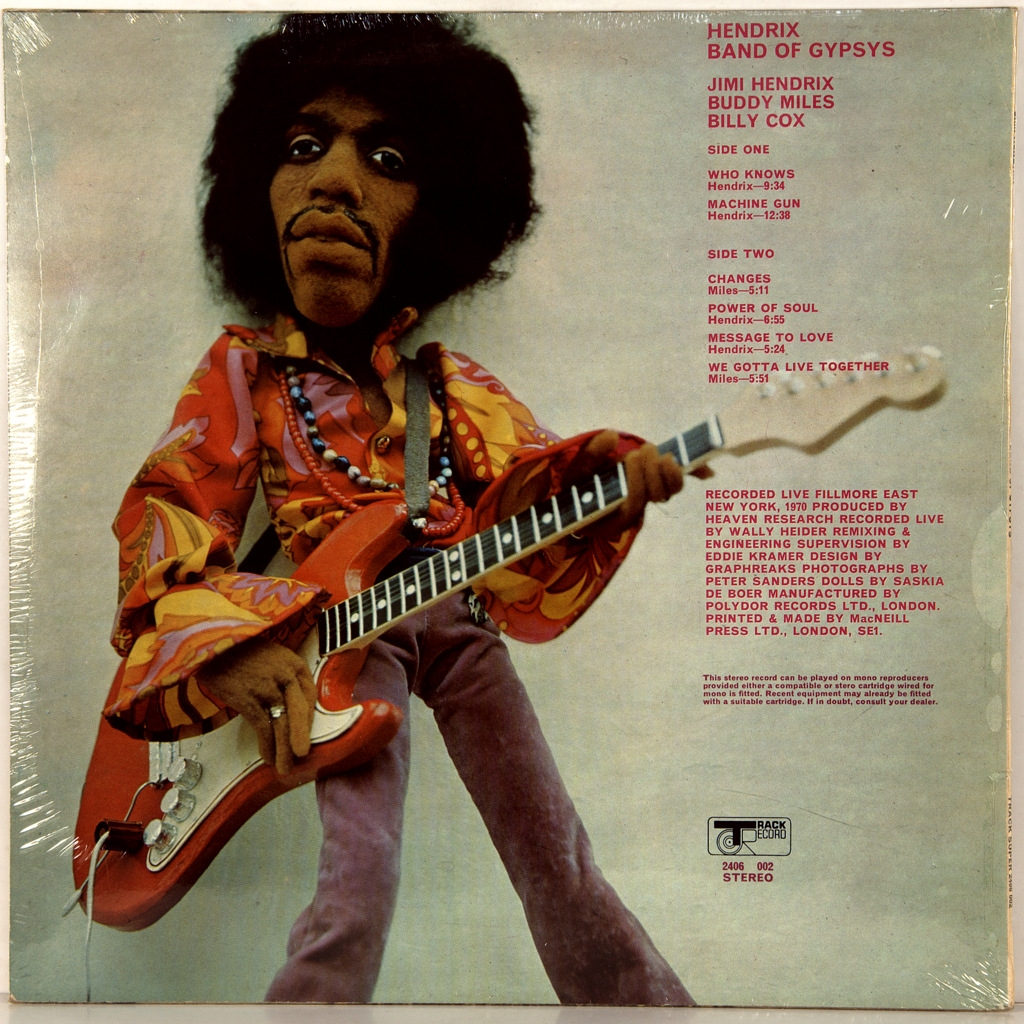 JIMI HENDRIX-BAND OF GIPSIES-1970-FIRST PRESS-UK-TRACK-2406002. Of The Matrix A-1/B-1. Mega rare original with the rarest alternative cover, the last lifetime album by HENDRIX. Band of Gypsys is a live album by American musician Jimi Hendrix, recorded with Billy Cox and buddy miles. This album was Hendrix's first project after the disbanding of the Jimi Hendrix Experience and the last to be released during the musician's lifetime, as well as the only album Hendrix released on Capitol Records, a condition of a forgotten contract signed in 1965, before Jimi became famous.