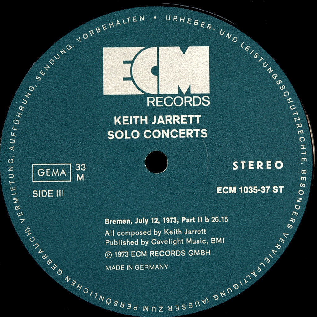 KEITH JARRETT-SOLO CONCERTS BREMEN, LAUSANNE (3LP'S) - 1973-FIRST PRESS GERMANY-ECM 1035/37. A rare original of the cult jazzman. An album released on ECM by jazz pianist Keith Jarrett performing solo improvisations recorded in Bremen (Germany, July) and Lausanne (Switzerland, March) in 1973; in between, Jarrett played in the US with his American Quartet. Originally released as a 3-LP album, it was the first of Jarrett's live solo performances released on ECM, following his studio debut solo recording Facing You (1971) and preceding his record-breaking concert in Cologne (1975).