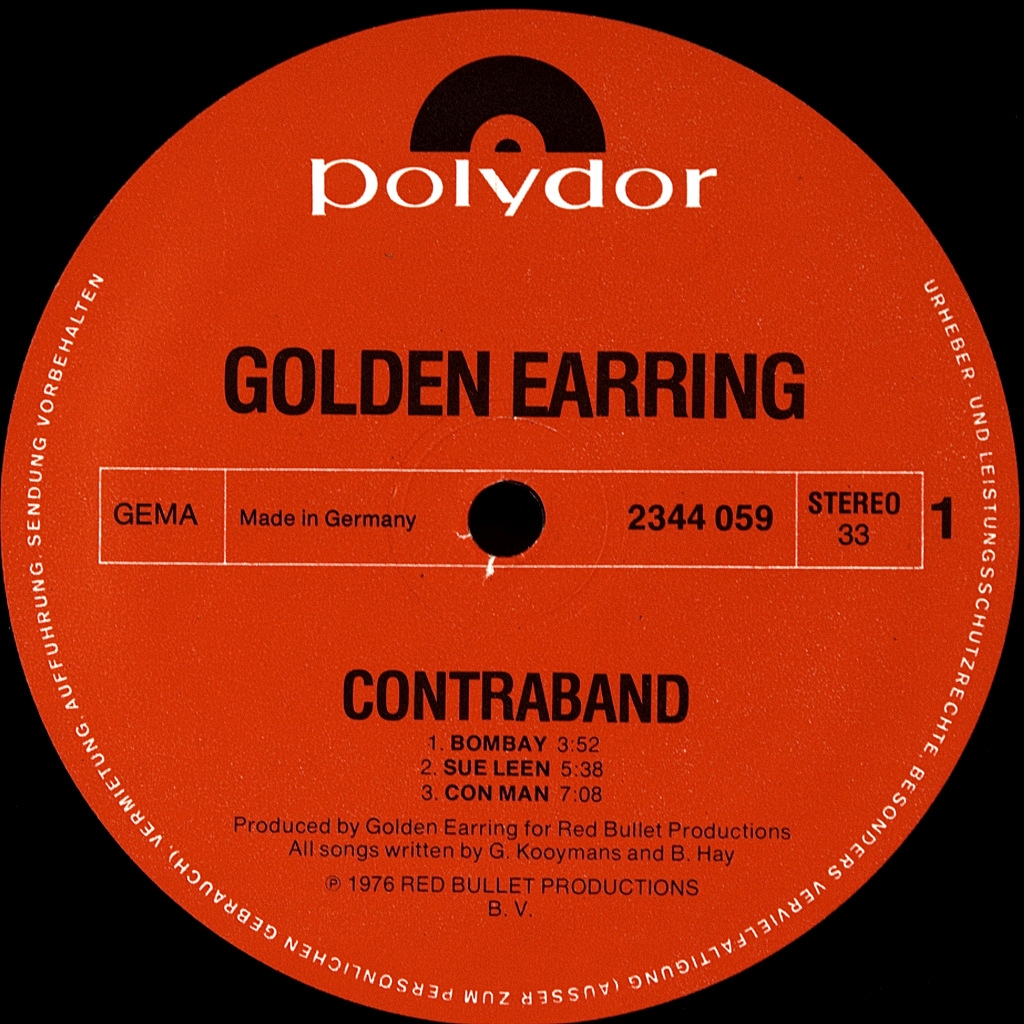 GOLDEN EARRING-CONTRABAND-1976-FIRST PRESS GERMANY-POLYDOR-2344059. Matrix A-1/B-1. A rare original of the cult group. Contraband is an album by the Dutch rock band Golden Earring, released in 1976. For the US, the same recordings were released under the album title Mad Love the following year (1977). This American version also had a different cover and song sequence. In addition, the song " Faded Jeans "was omitted and replaced with the track"I Need Love".
