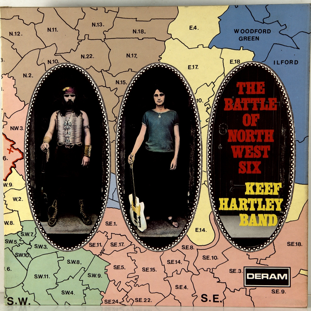 KEEF HARTLEY BAND-THE BATTLE OF NORTH WEST SIX-1969-FIRST PRESS UK-DERAM-SML-1054. A very rare British original in archival condition. The Battle of North West Six is the second album by Keefe Hartley. At the time, Hartley's six-piece band was appearing with an expanded brass section as Keefe Hartley's Big Band, and a number of songs on the album include this expanded line-up. His professional music career began when he replaced Ringo Starr in the band Rory Storm and the Hurricanes, a popular Liverpool band at the time. He subsequently played and recorded with The Artwoods, and became a member of the John Mayall Bluesbreakers. After that, he formed his own band "The Keef Hartley (Big) Band", whose style included elements of jazz, blues, rock and roll. The band performed at the Woodstock Festival in 1969 and released 4 popular albums including Halfbreed and The Battle of North West Six. The band featured guitarist Miller Anderson and bassist Gary Thane (Uriah Heep).