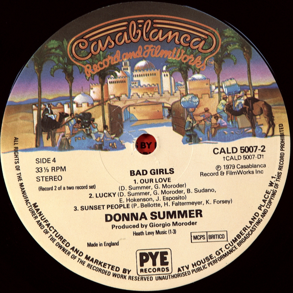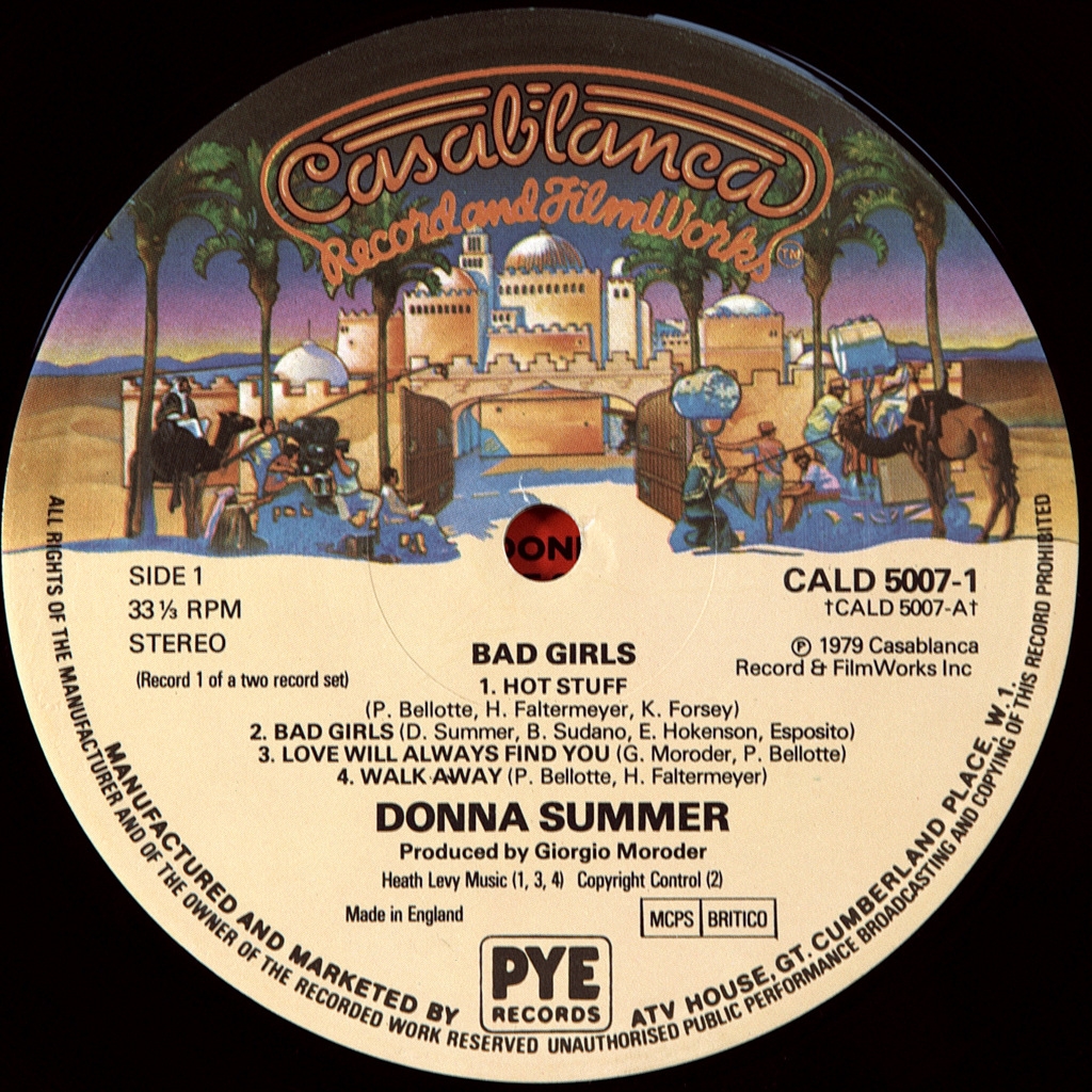DONNA SUMMER-BAD GIRL (2LP) - 1979-FIRST PRESS UK-CASABLANCA-CALD5007-1. A rare British original of the queen of soul disco. Bad Girls is the seventh studio album by American singer-songwriter Donna Summer, released on April 25, 1979 through Casablanca Records. Originally released as a double album, Bad Girls became the best-selling and most critically acclaimed album of Summer's career. It was also her last studio album on the Casablanca Records label. Bad Girls reached the top of the US Billboard 200 chart, where it lasted six weeks. Bad Girls received universal acclaim and was certified double platinum by the Recording Industry Association of America (RIAA) just a week after its release. At the 1980 Grammy Awards, Bad Girls was nominated for Album of the Year and Hot Stuff was nominated for Best Female Rock Vocal Performance. In addition, "Bad Girls "was nominated for Best Female Pop Vocal Performance and Best Female R/B Vocal Performance, and" Dim All the Lights " was nominated for Best Disco Recording. Bad Girls is considered one of the greatest disco albums. "Rolling Stone" in the category of women's 50 greatest albums of all time, put the album at number 23.
