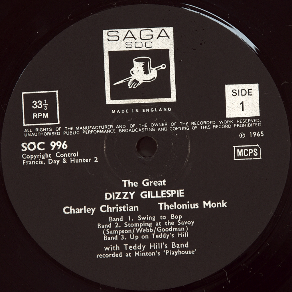 DIZZY GILLESPIE-THE GREAT DIZZY GILLESPIE-1957-FIRST PRESS 1965 UK-SAGA-SOC996. A rare original of the cult album. Jazz trumpeter-virtuoso, vocalist, composer, arranger, leader of ensembles and orchestras, the founder of modern improvisational jazz together with Charlie Christian and Thelonious Monk make standards.