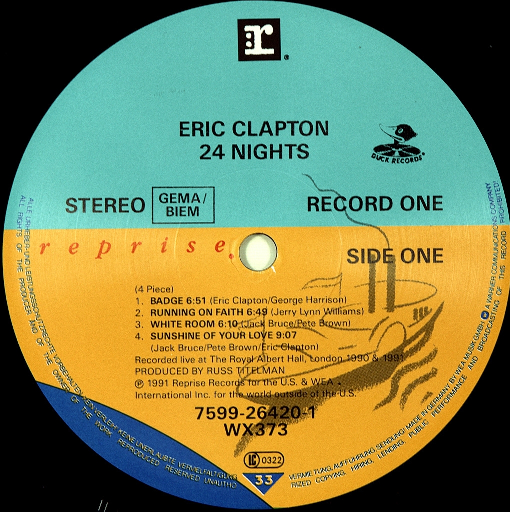 CLAPTON, ERIC-24 NIGHTS (2LP'S)-1991-FIRST PRESS UK/EU -REPRISE-7599-26420-1. Very rare original cult album recorded live at the Royal albert Hall. 24 Nights — recorded live album by Blues-rock musician Eric Clapton, released in 1991. 24 Nights contains selected songs from the 42 Clapton concerts in the hall the Royal albert hall in London. The album was originally planned to be released in 1990, after 18 concerts Eric in the beginning of the year, but the musician was dissatisfied with the recorded material and the gate 24 Nights was delayed. In 1991, Clapton set a record by playing the Royal albert hall 24 nights in a row. The album, with the inclusion of new records that came out a few months later.