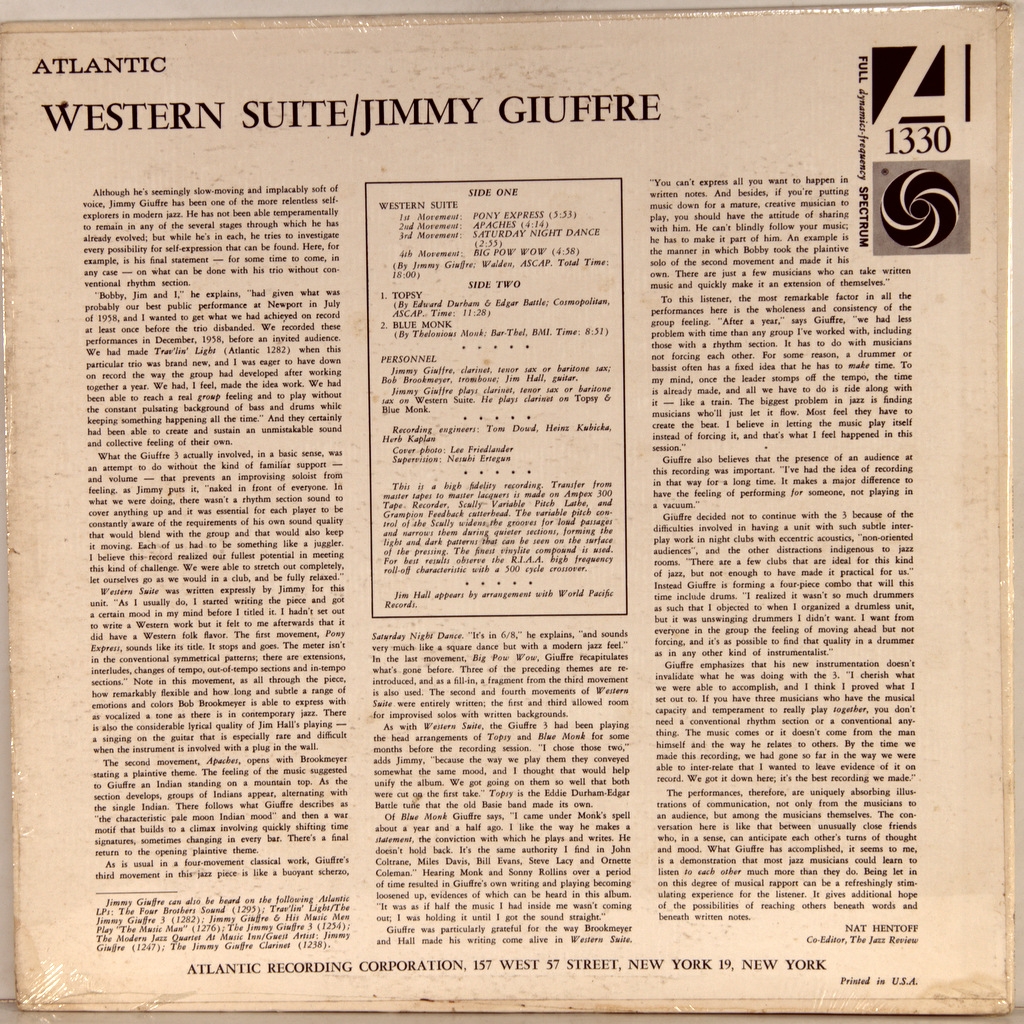 JIMMY GIUFFRE-WESTERN SUITE-1960-FIRST PRESS USA-ATLANTIC-1330. A rare original of the cult album. Western Suite is an album by American jazz composer and arranger Jimmy Giuffre, released on the Atlantic label in 1960.. Allmusic rated the album 4 stars