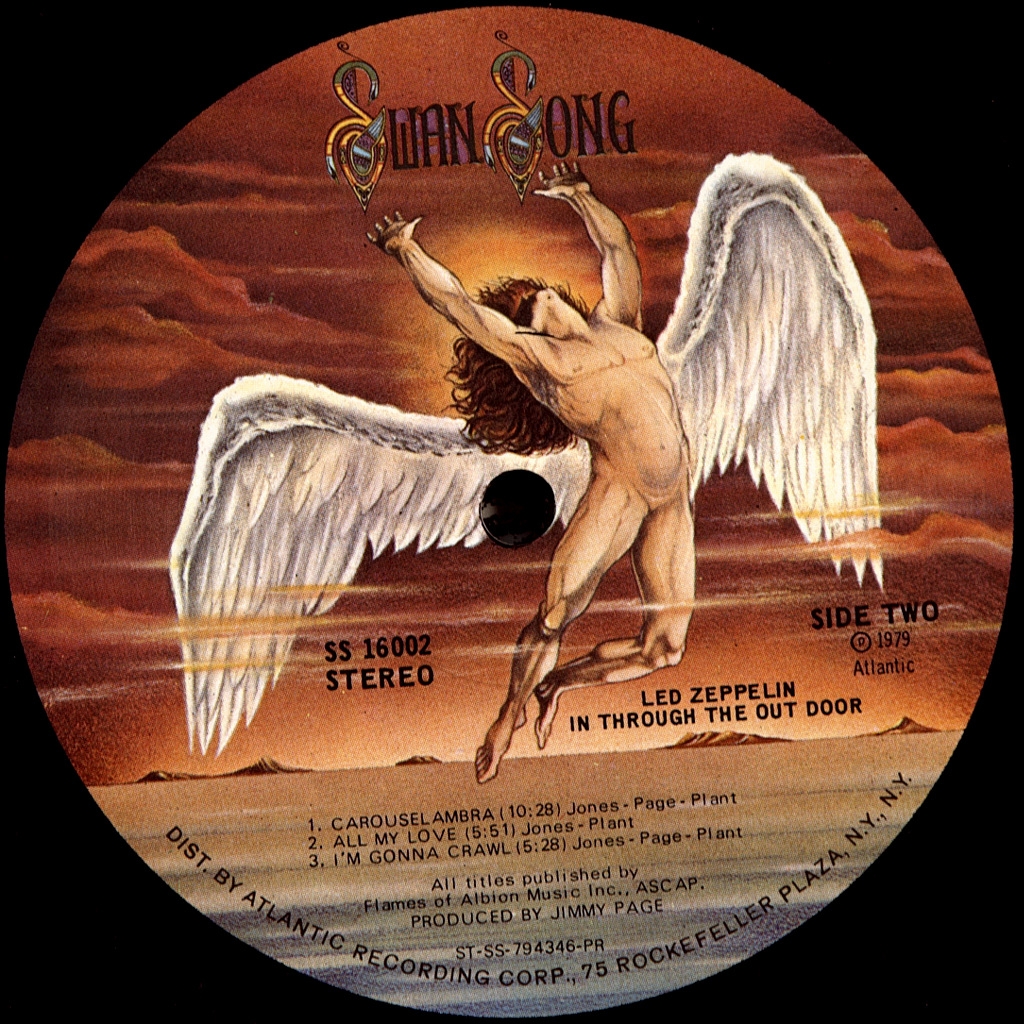 LED ZEPPELIN-IN THROUGH THE OUT DOOR-1979-FIRST PRESS USA-SWAN SONG-SS16002 .A rare American original in full configuration. The cover version of " D " In Through the Out Door is the eighth and last studio album by the English rock band Led Zeppelin. It was recorded over three weeks in November and December 1978 at ABBAPolar Studios in Stockholm, Sweden, and released by the Swan Song label on August 15, 1979. It was the last album released before the death of drummer John Bonham in 1980, which led the band to break up. The album was a huge commercial success, especially in the United States, where it reached No. 1 on the Billboard chart in just its second week on the chart. It reached number one in the UK, Canada and New Zealand, and reached the Top 10 or 15 in several other countries. In Through the Out Door was the band's last studio release to reach the top of the charts in America.
