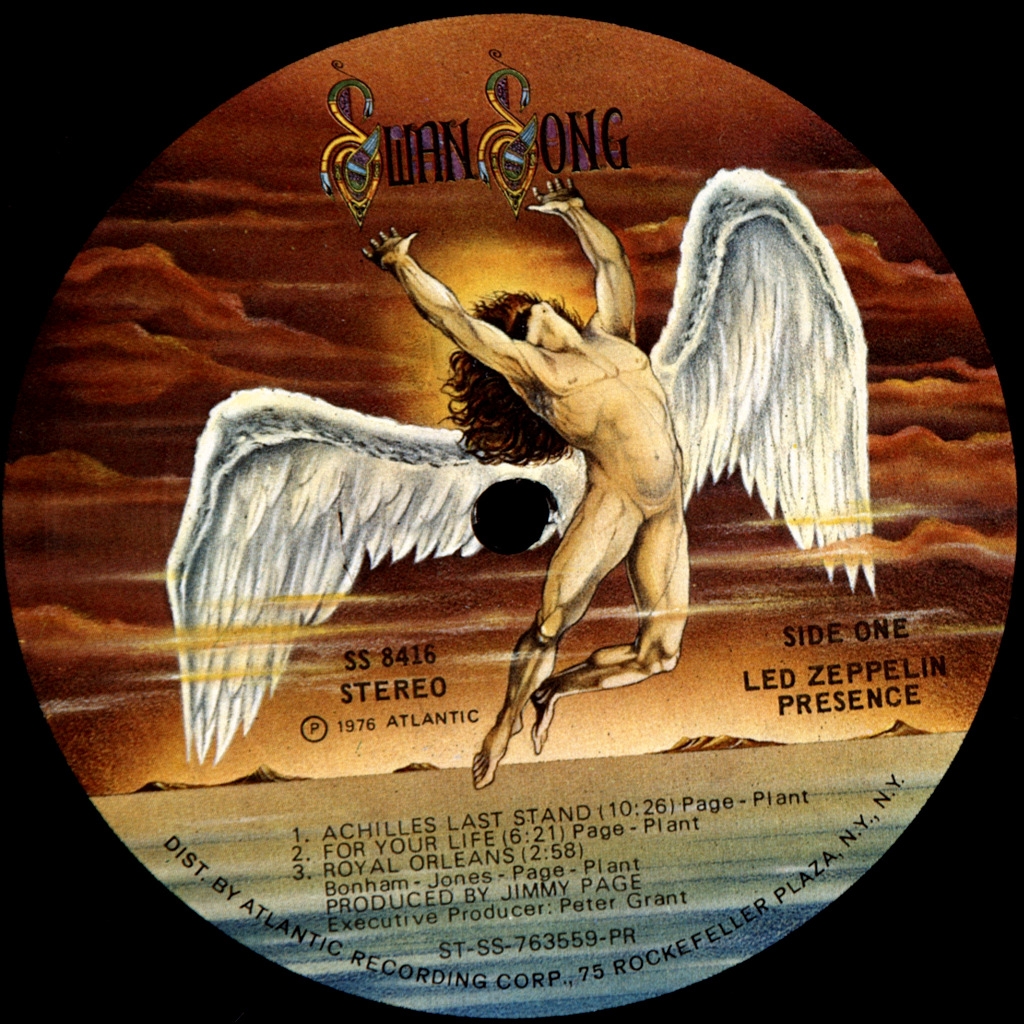 LED ZEPPELIN-PRESENCE-1976-FIRST PRESS USA-SWAN SONG number SS8416. A rare American original of the cult album. Presence is the seventh studio album by the English rock band Led Zeppelin, released by Swan Song Records on March 31, 1976. While the album was a commercial success, reaching the top of both the UK and US album charts and receiving triple platinum certification in the United States, it received mixed reviews from critics and was the band's best-selling studio album while they were still active.