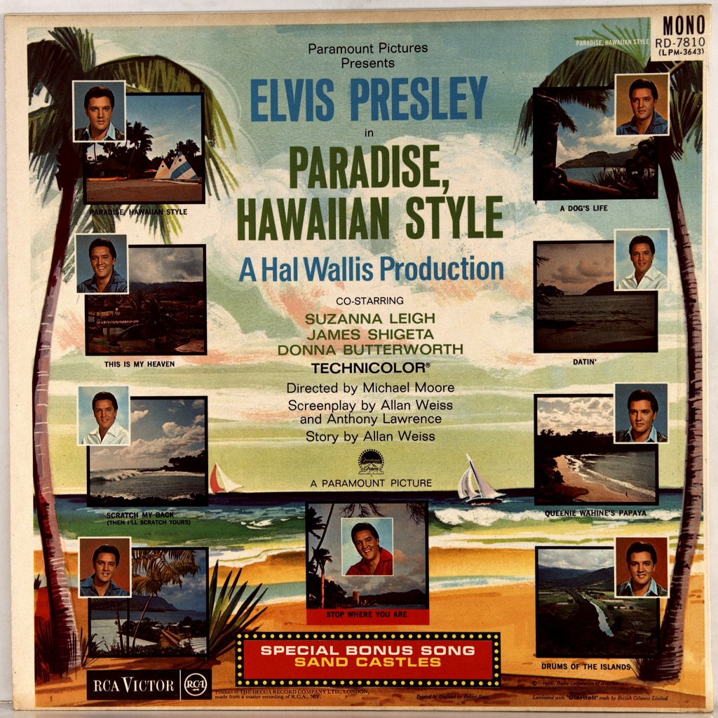 PRESLEY, ELVIS-PARADISE, HAWAIIAN STYLE-1966-THE FIRST PRESS (MONO) UK-RCA-RD-7810. A rare British original of the King of rock and roll. Elvis Presley-Paradise, Hawaiian Style is a studio album by Elvis Presley, which was the soundtrack to the film of the same name with his participation ("Paradise in Hawaiian", released in 1966). The album went on sale on June 10, 1966. In the United States, it rose to number 15 on the Billboard Top LP's album chart (American magazine "Billboard")