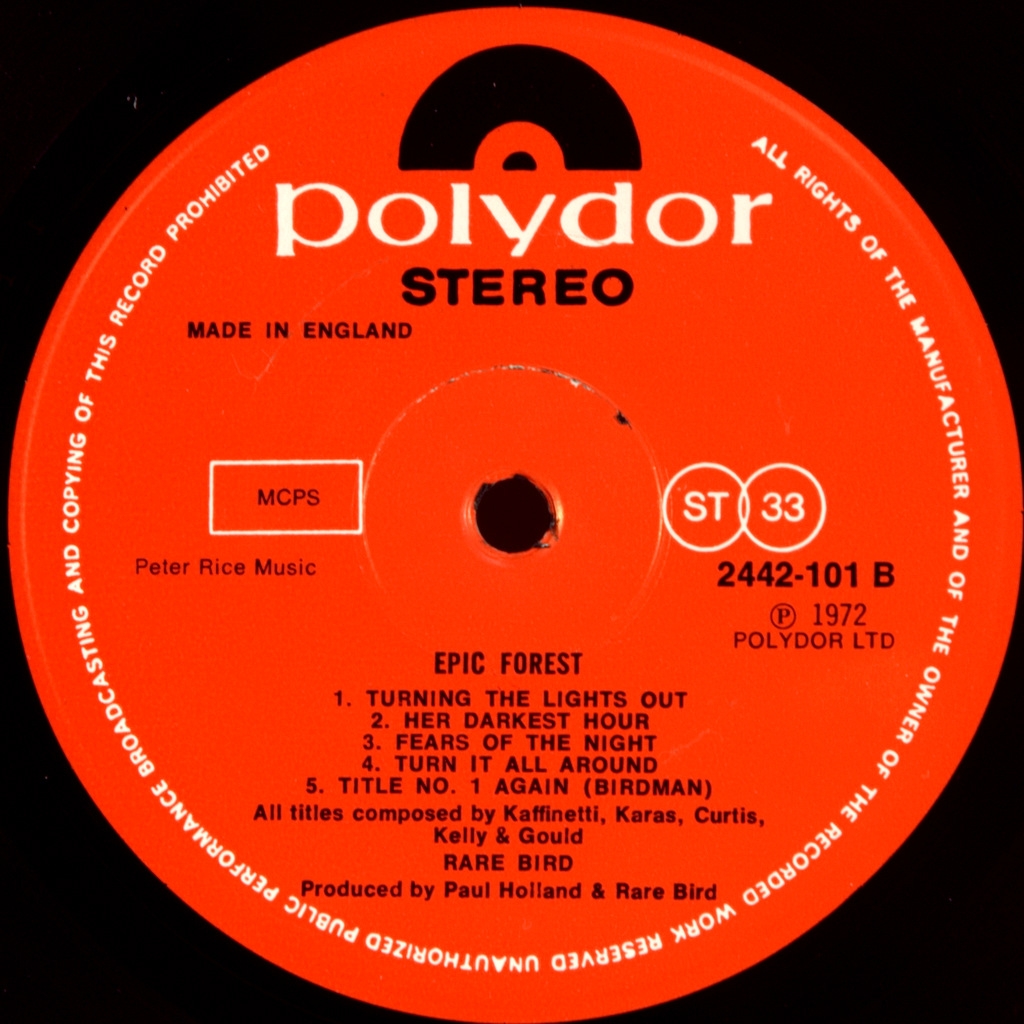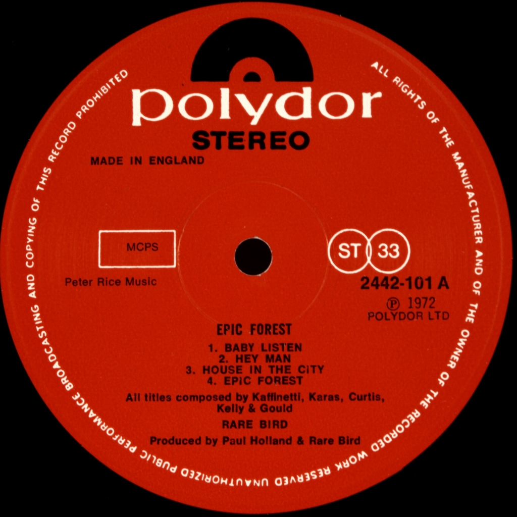 RARE BIRD-EPIC FOREST-1972-FIRST PRESS UK-POLYDOR-2442101. A very rare original of the cult prog band in full configuration (single and poster). The third studio album by Rare Bird . English progressive rock band, formed in 1969. They were more successful in other European countries. They released five studio albums between 1969 and 1974. In the UK, they never entered the charts with an album, but came out with one single, the organ-based track "Sympathy", which reached number 27. It has sold a million copies worldwide