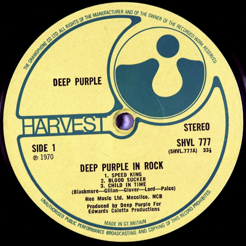 DEEP PURPLE-IN ROCK-1970-THE FIRST PRESS UK-HARVEST number SHVL-777 matrix A1/B1 (Dream!!!!) stamper 2PM/1HG Mega rare original with unique matrices. Deep Purple in Rock is the first studio album by the classic line-up of the band known as "Mark II". On this album, the band's style changed to hard and heavy.