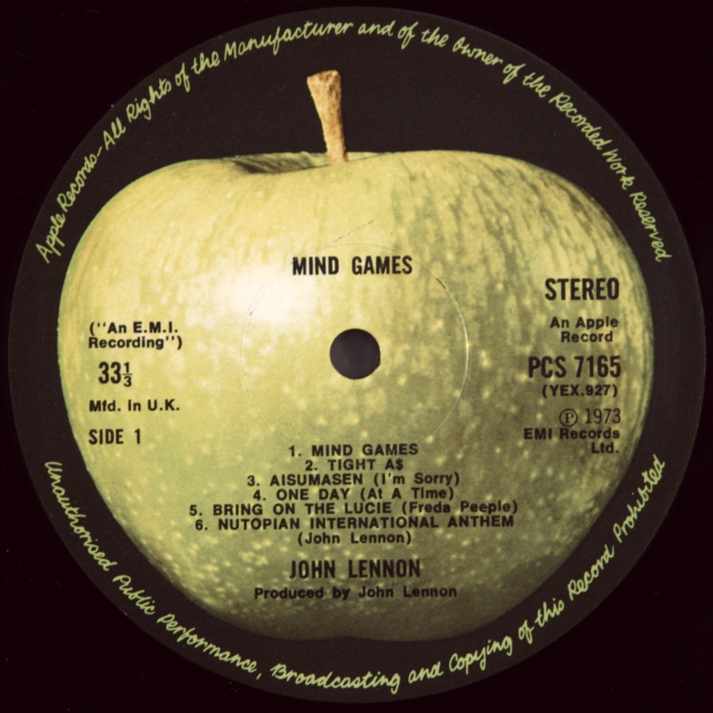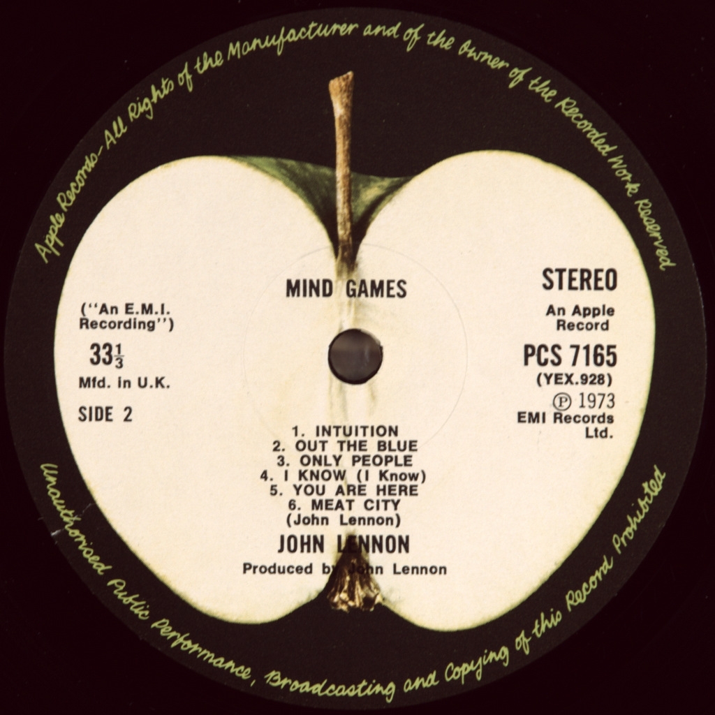LENNON, JOHN-MIND GAMES1973-FIRST PRESS UK-APPLE - PCS7165 matrix YEX 927-1U /YEX 928-1U . A rare British original. It was the first Lennona record made independently, without the help of Phil Spector. The album reached No. 13 in the UK and No. 9 in the US, where it was certified gold. The album was recorded when Lennon was having difficulties with immigration to the United States and at the beginning of his 18-month separation from Yoko Ono.